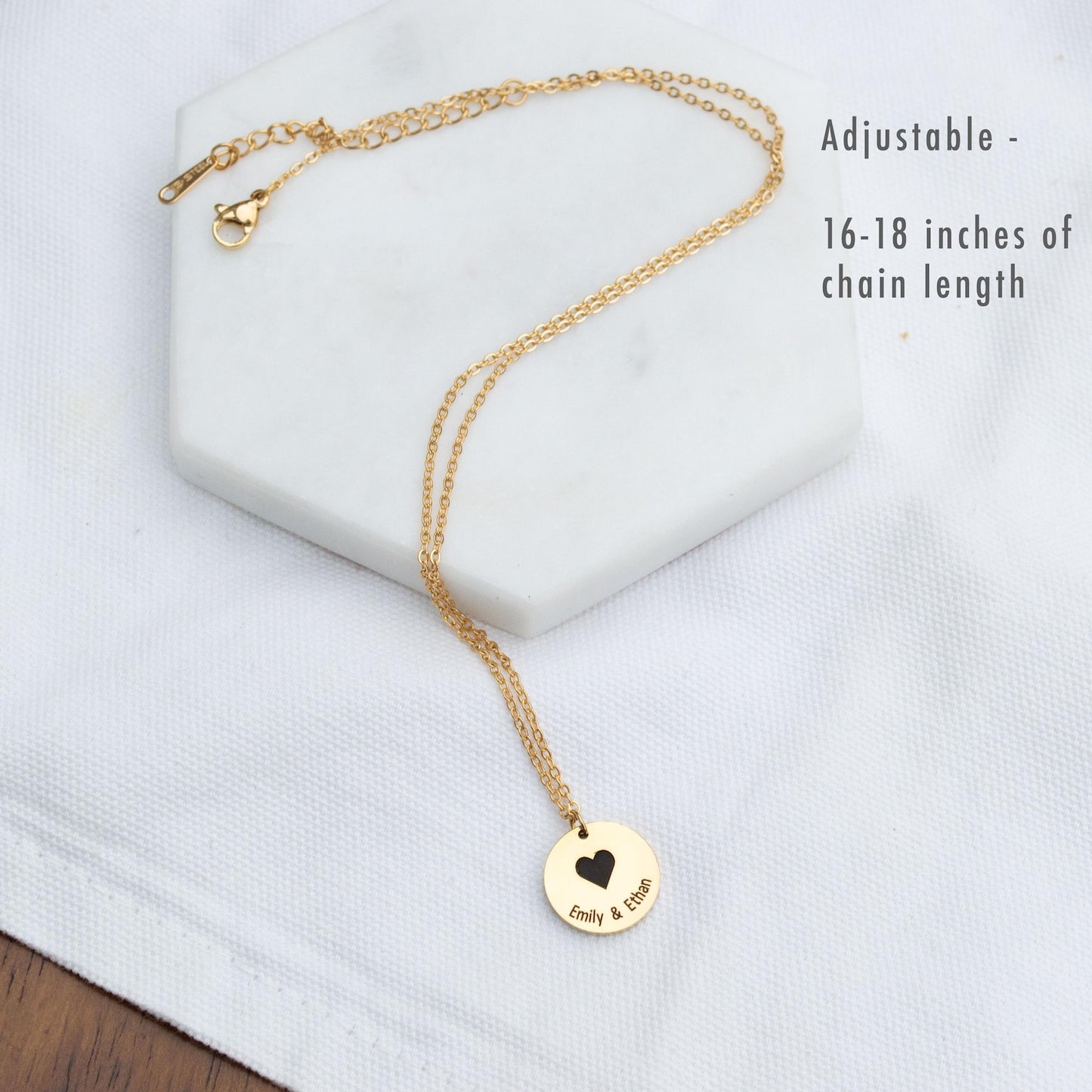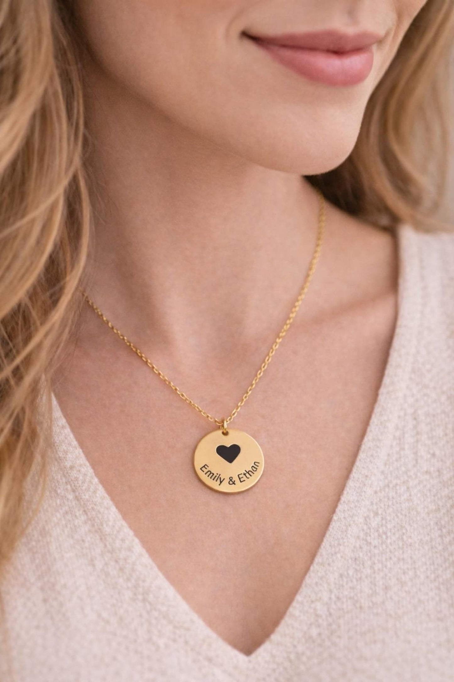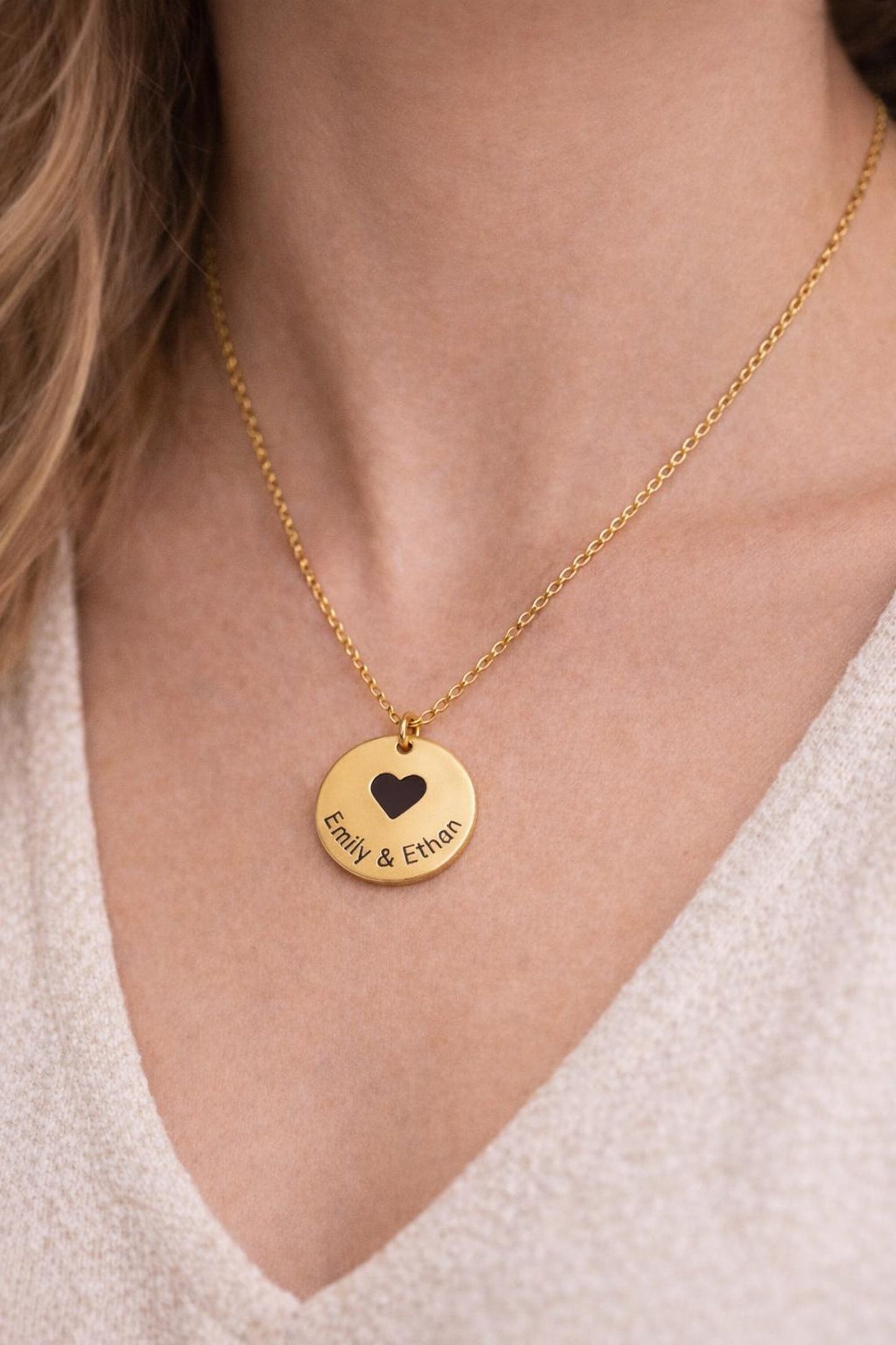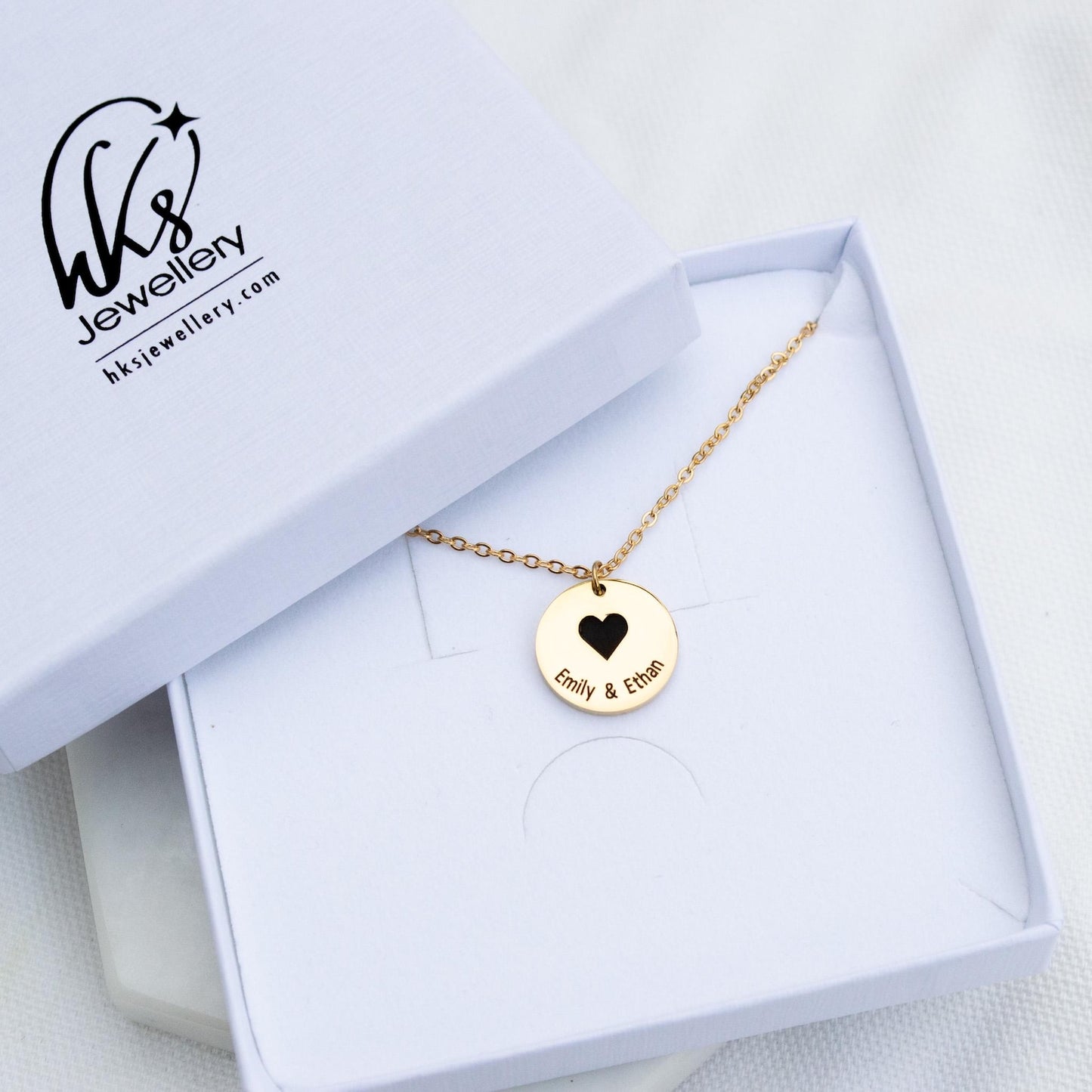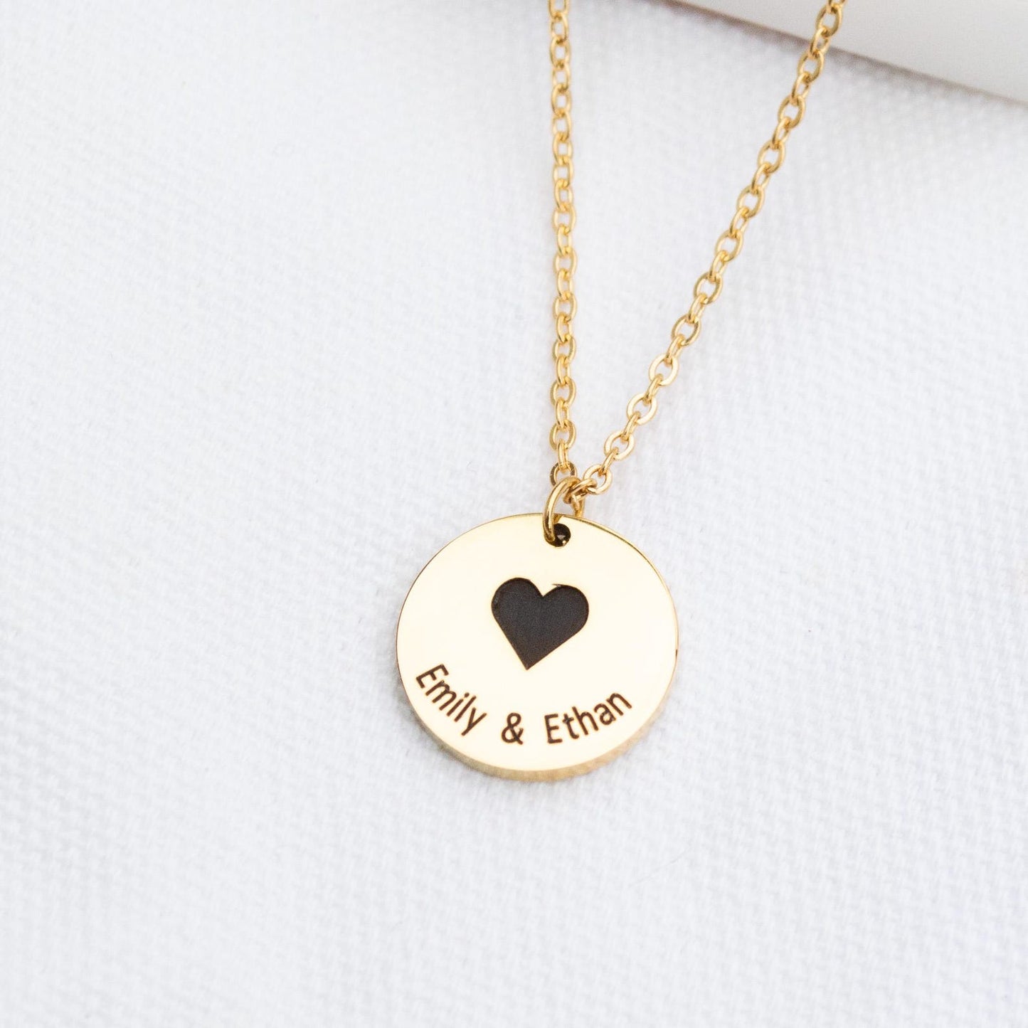 Celebrate your love with a personalised gold heart necklace, custom engraved with two names to create a meaningful keepsake you’ll treasure forever.