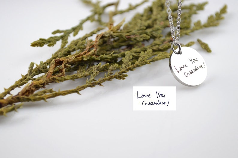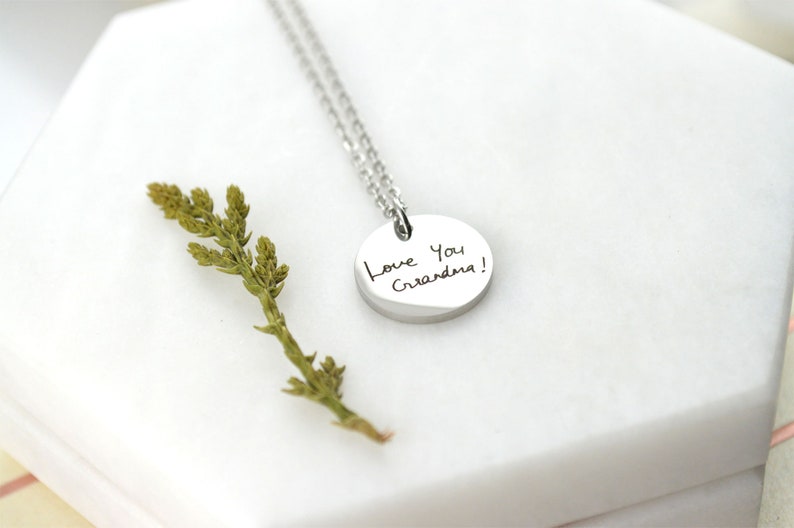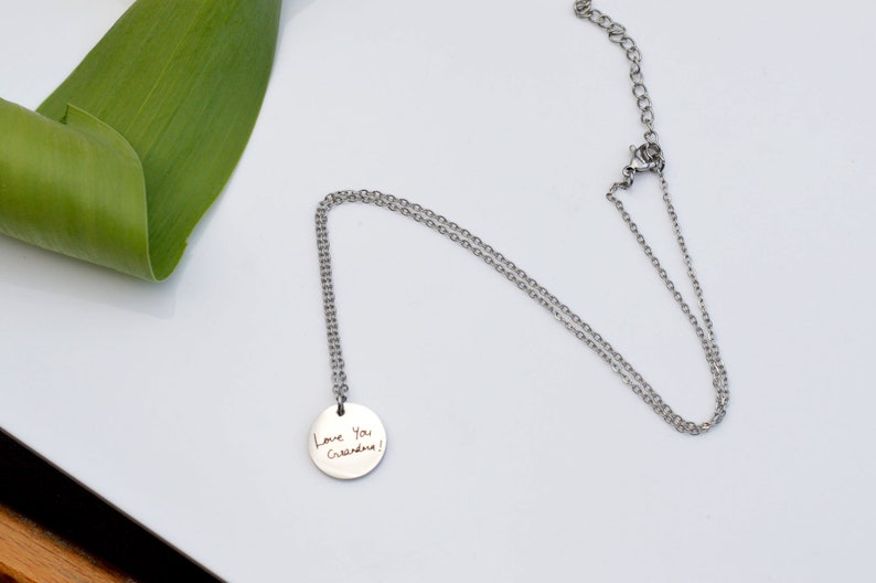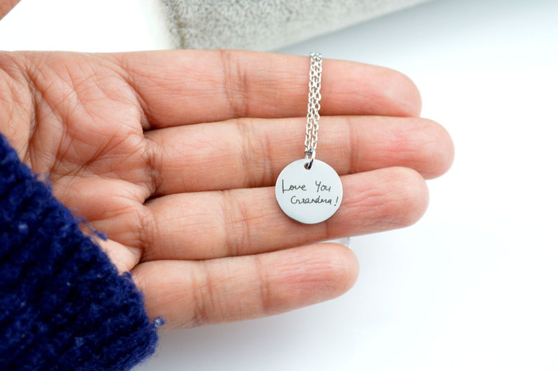 Some words are too important to forget, so why not keep them close to your heart? The Actual Handwriting Disc Necklace turns a handwritten note, message, or signature into a piece of jewellery that will last forever. This necklace is a personal treasure and a beautiful way to honour love, memory, and connection. It could be a phrase from a loved one, a doodle from your child, or a note left behind by someone you miss.