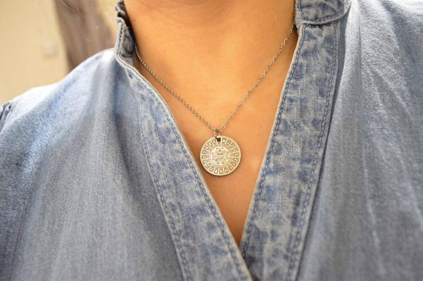 The Aztec Mayan Calendar Necklace combines timeless symbols, age-old knowledge, and personal significance. This medallion, which was inspired by revered Mesoamerican customs, is a sign of luck, strength, and protection in addition to being a fashionable piece. Every element of this necklace conveys history and heart, whether it is worn as a spiritual memento or given as a gift to encourage someone's journey.