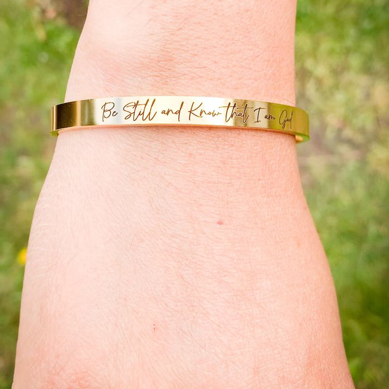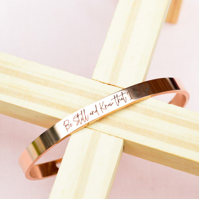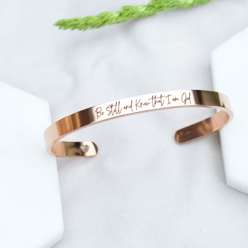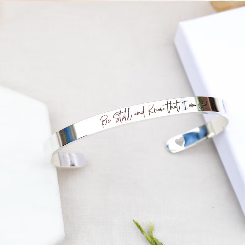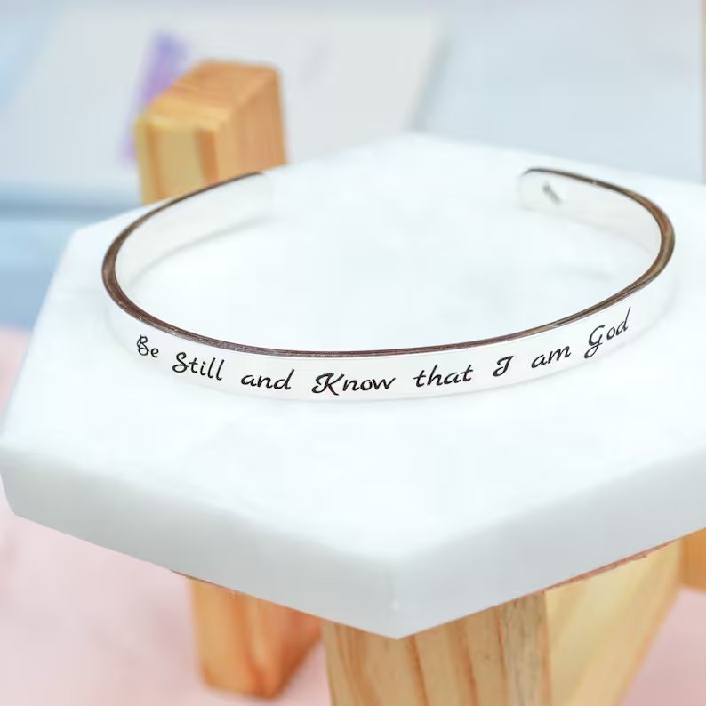 Sometimes clarity, solace, or strength can be found in just one verse. The Bible Verse Cuff Bracelet is a piece that speaks straight to the heart and is a wearable representation of faith. It provides room for Scripture that encourages, comforts, or uplifts and is thoughtfully written and intensely personal. This bracelet transforms from an accessory into a source of strength and serenity, whether it is worn as a daily reminder of God's presence or given as a gift to a loved one.