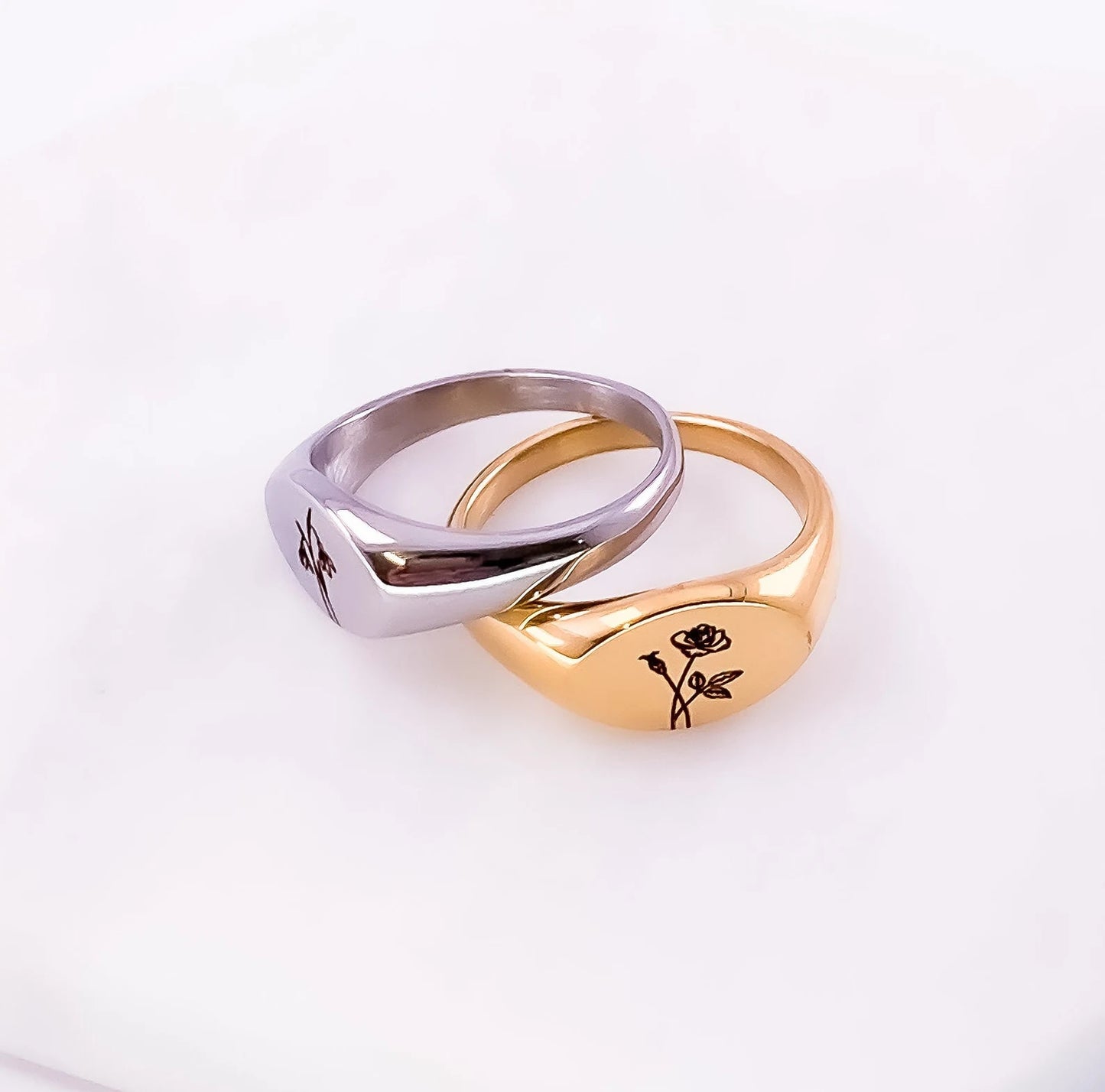 Birthflower Signet Ring – A Bloom That Lasts Forever