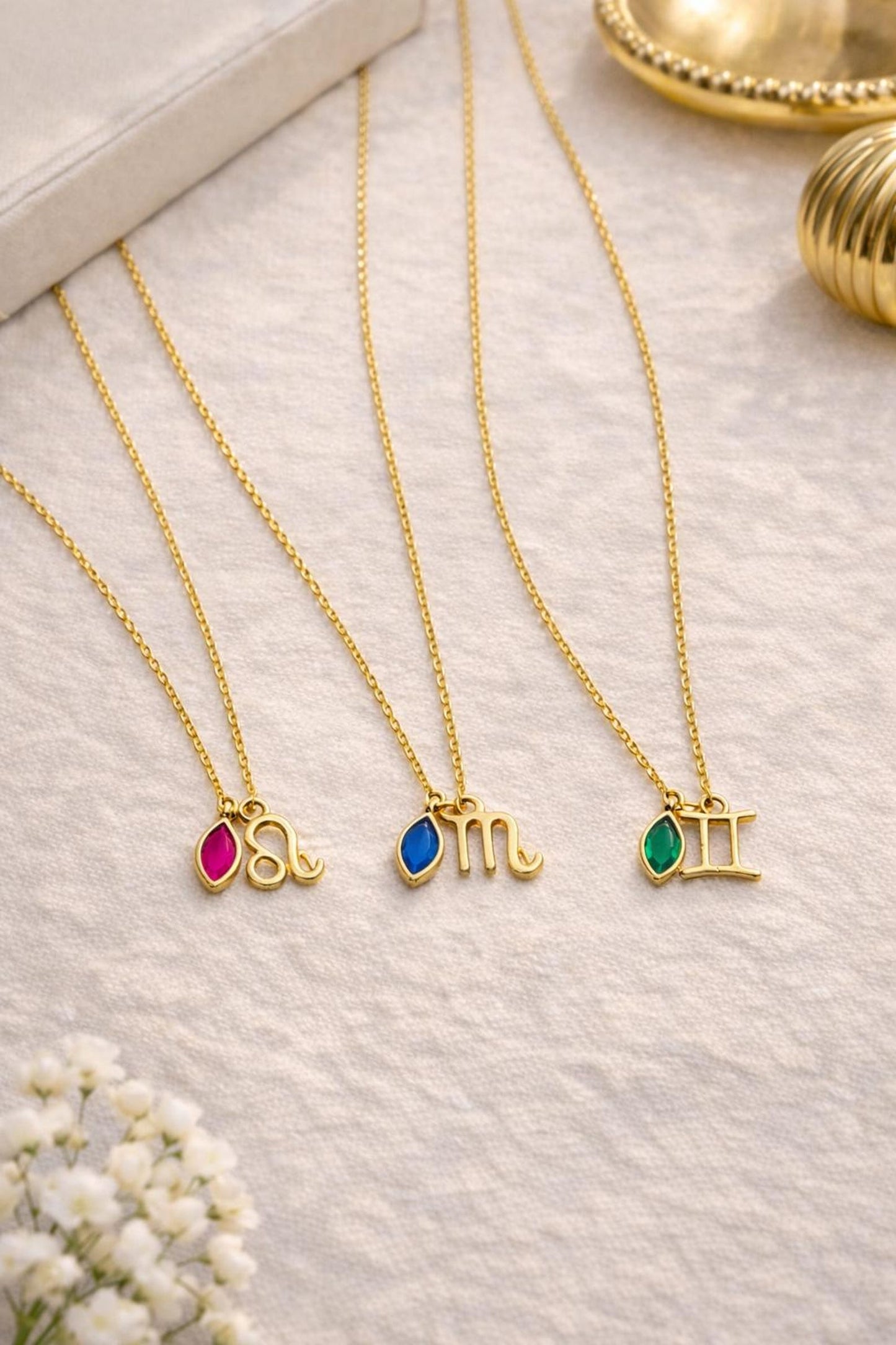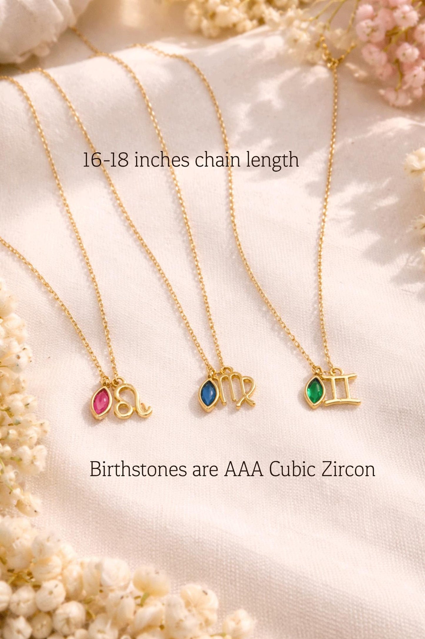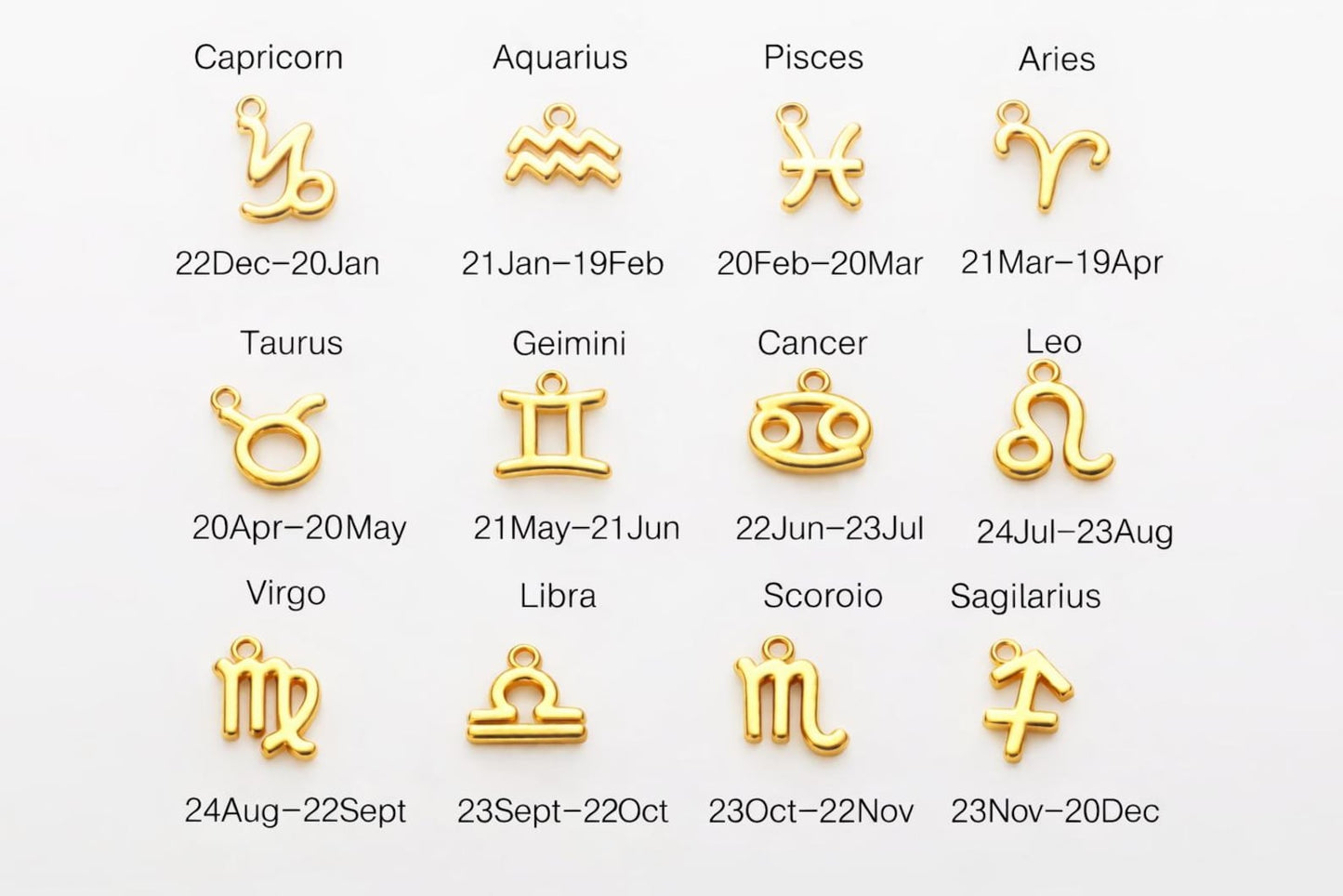 High Quality AAA Cubic Zircon Birthstone and gold-plated zodiac charms.