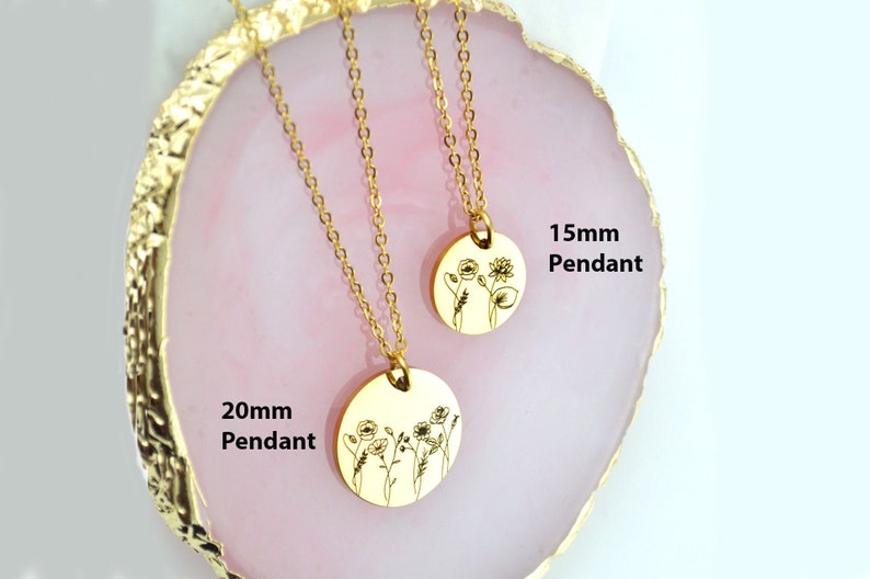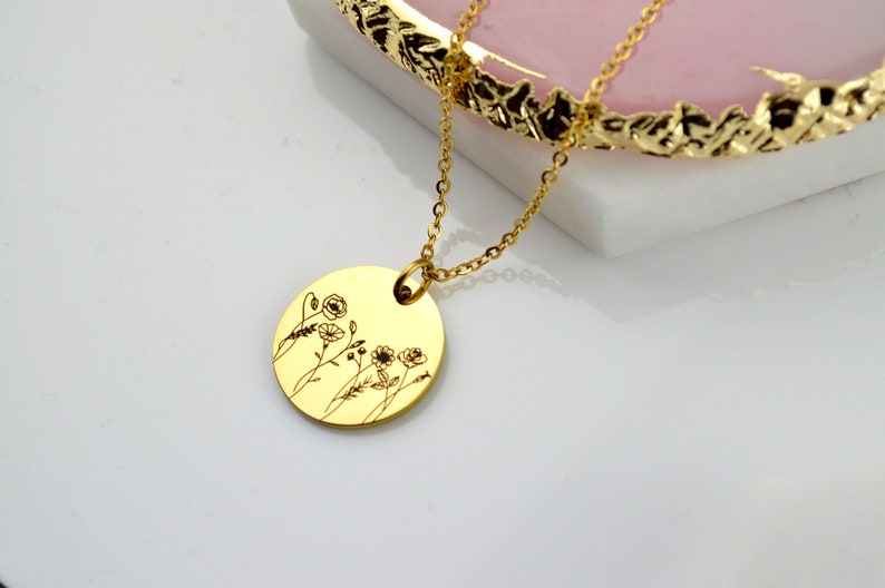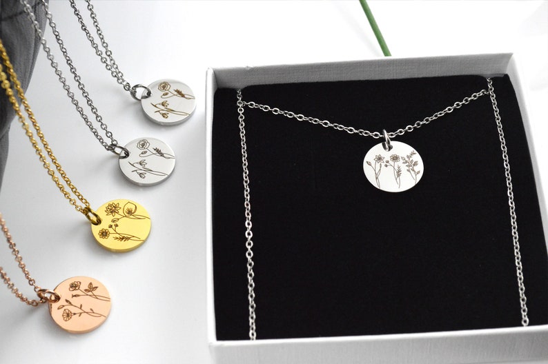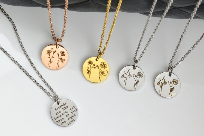 - You can have 2–4 birth flowers engraved on one disc, with each flower representing the month of birth of a loved one.