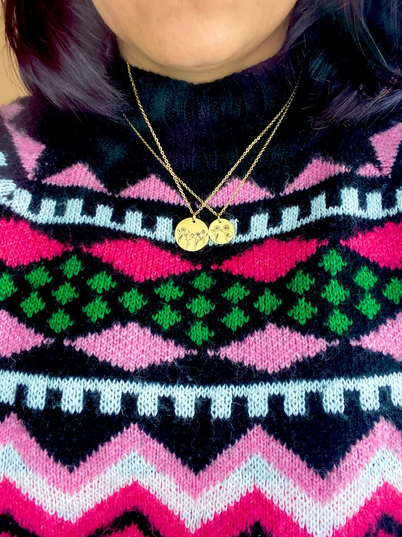 This Combined Birth Flower Disc Necklace is a beautiful way to connect the stories of the people you love. Each flower tells a story. This necklace lets you carry the spirit of your kids, siblings, grandparents, or a group of friends with you. Thoughtfully made for important events like birthdays, Mother's Day, or just because, it's a gift that grows with meaning and connection.