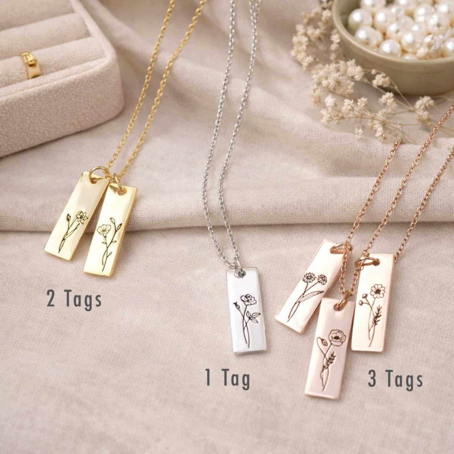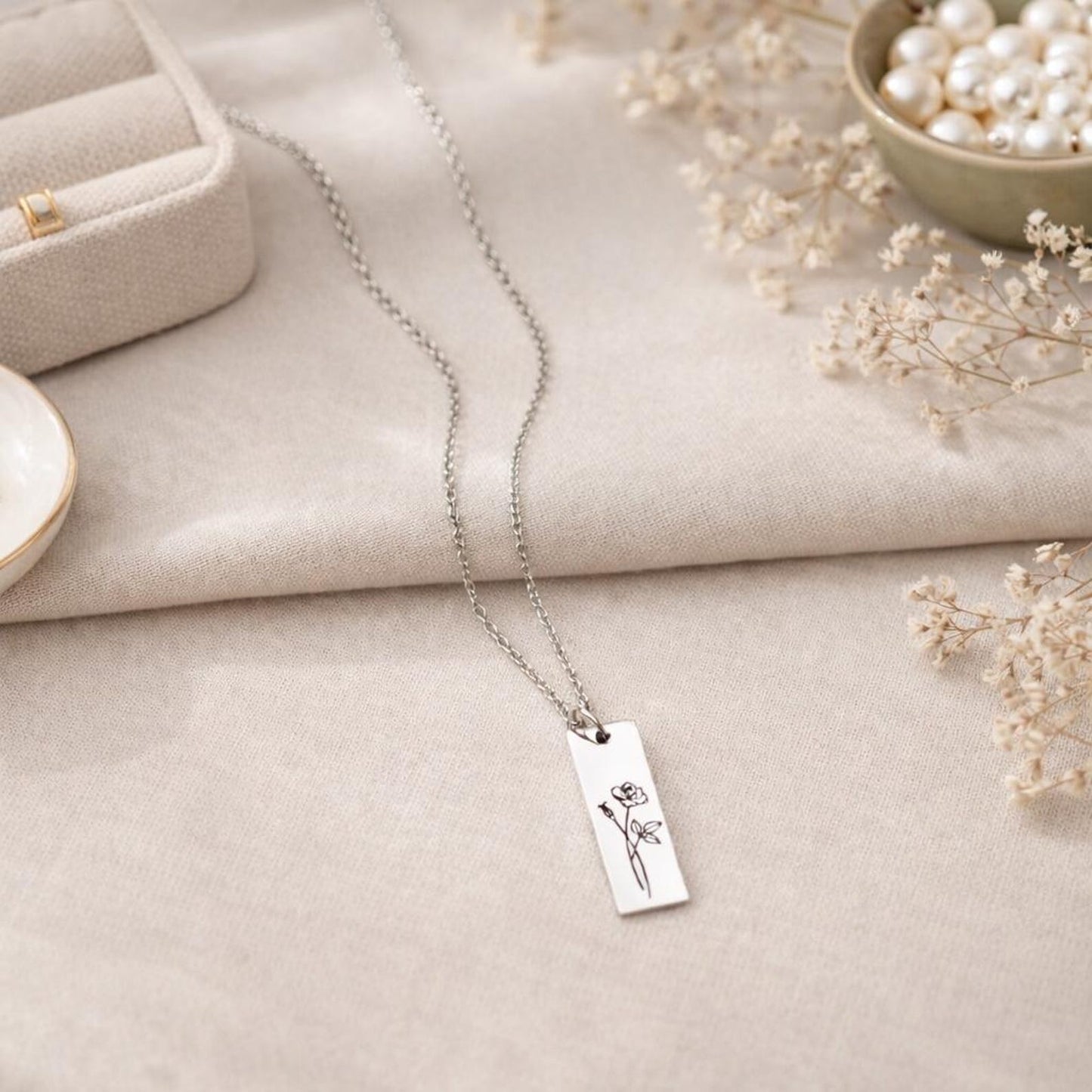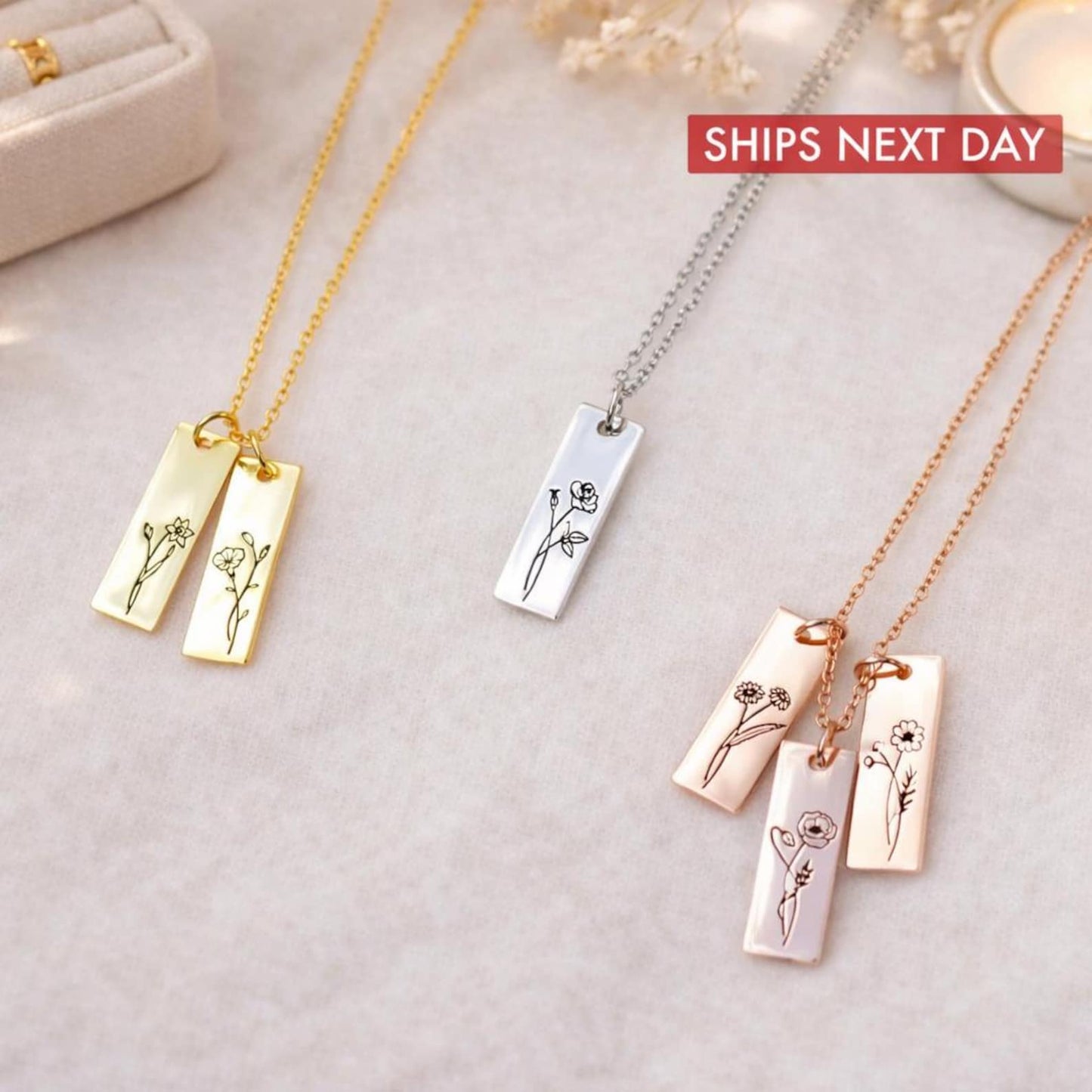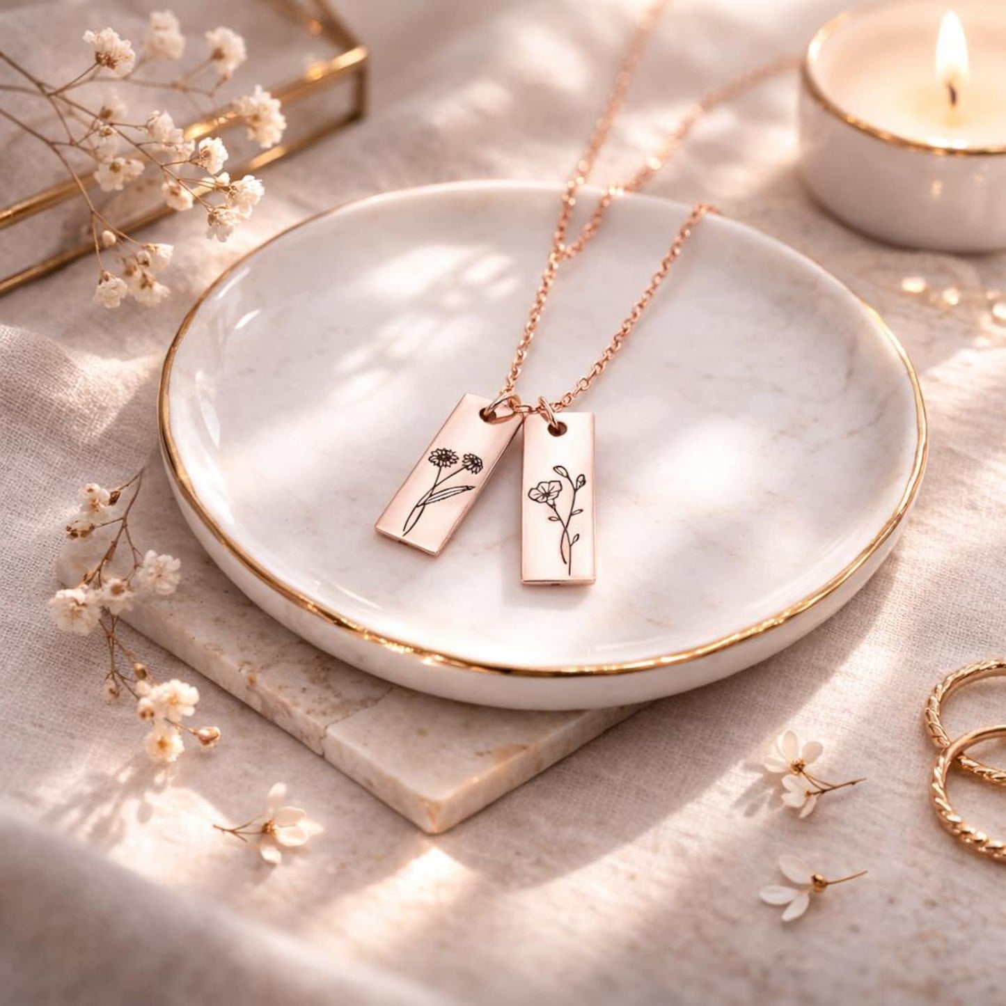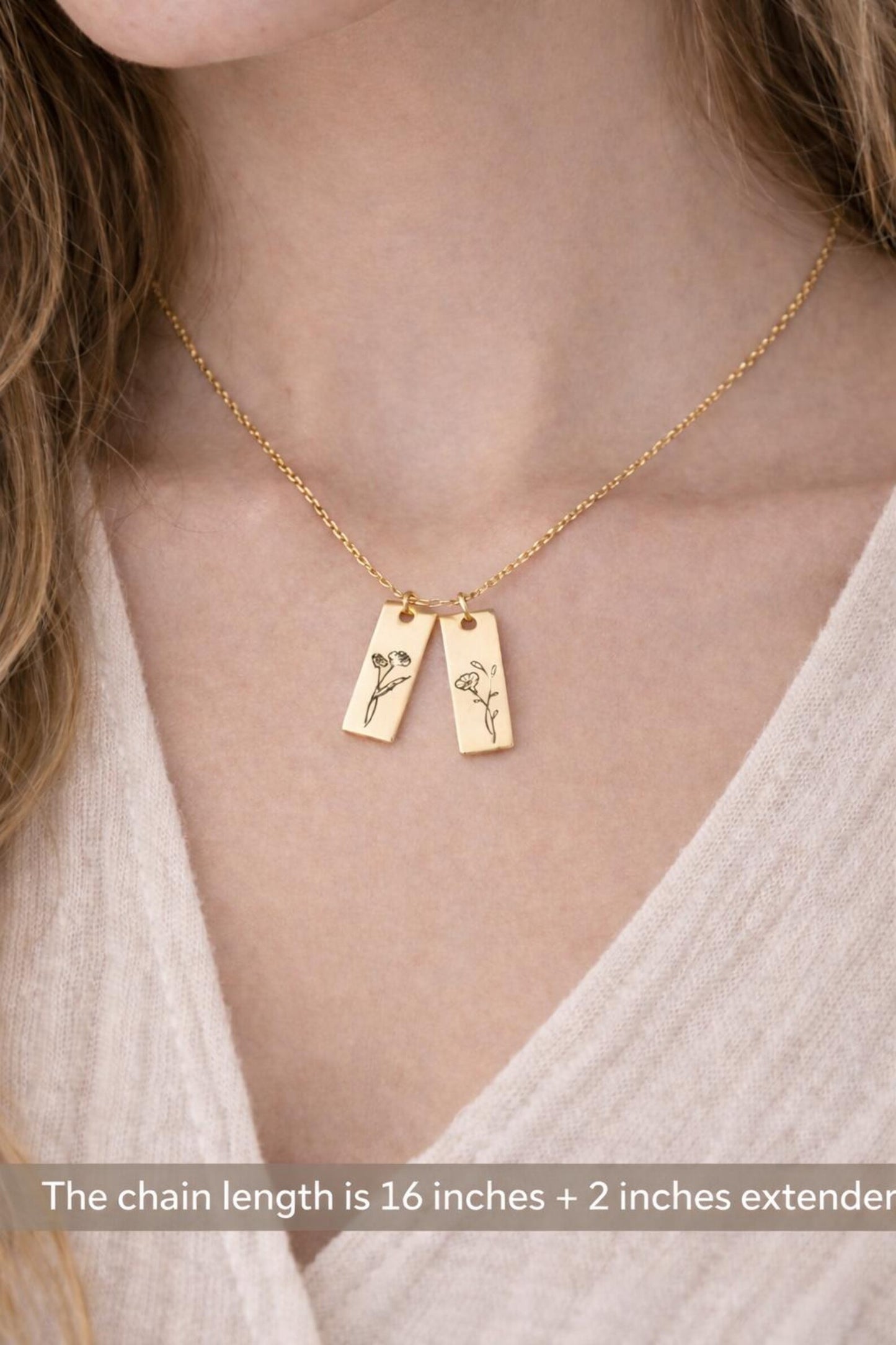 The Combined Birth Flower Necklace brings together the stories of each bloom. The flowers are delicately engraved and will be treasured forever. This necklace lets you wear your heart on your sleeve, whether it's to honour your kids, celebrate your siblings, or show that love can last through generations. This beautiful piece is meant to honour the people and months that have shaped your life. You can wear it every day and remember it for the rest of your life.
