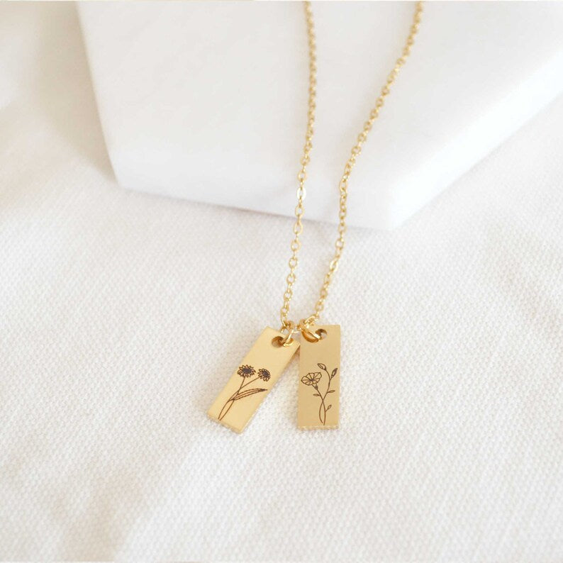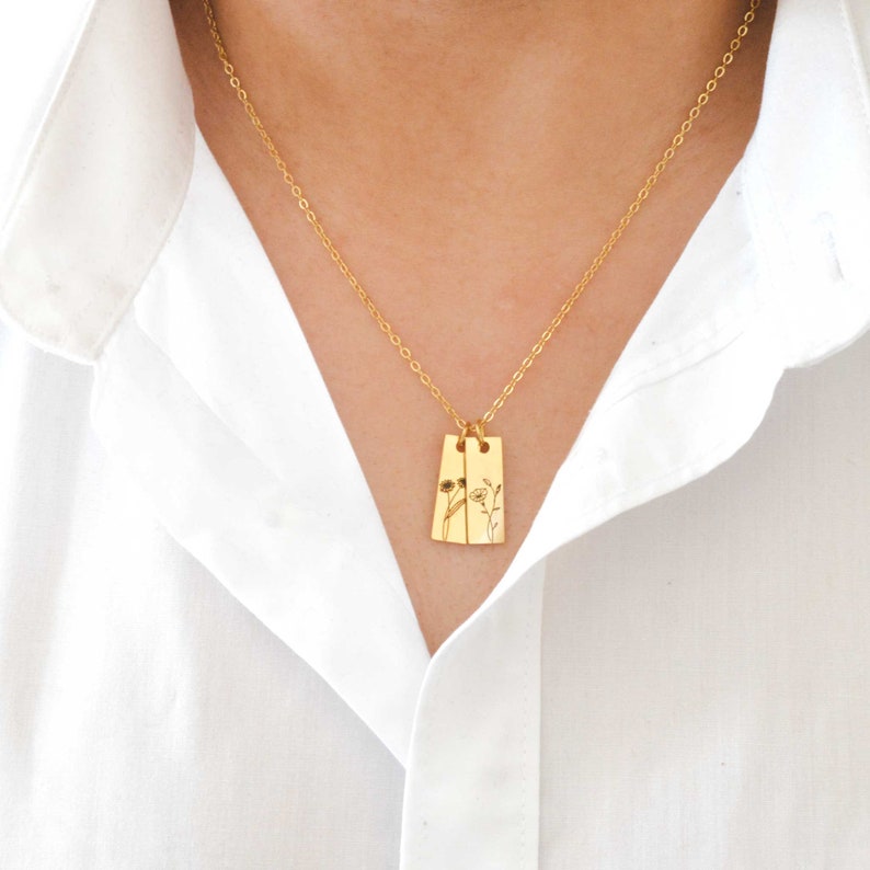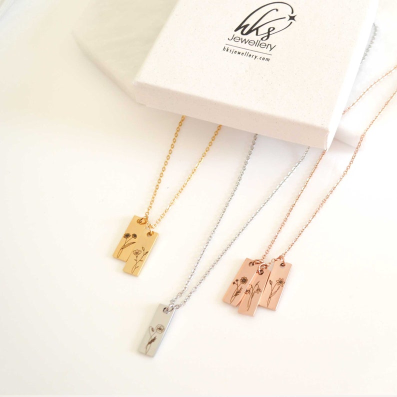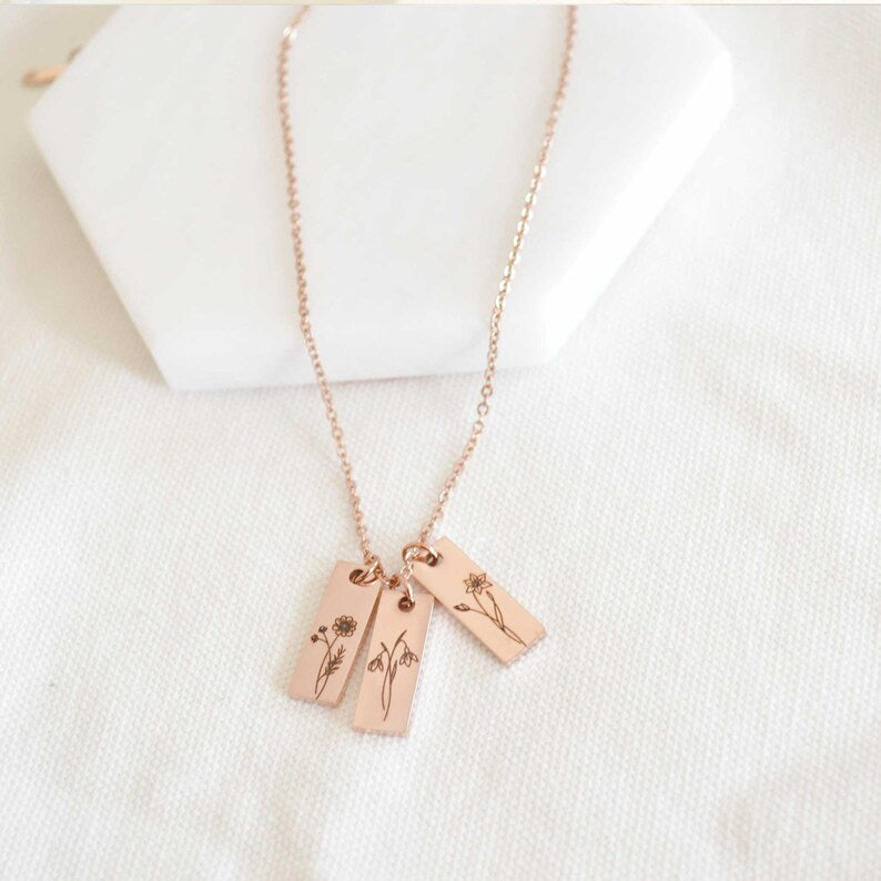 - Custom Engraving: To commemorate each loved one, select from up to five vertical bar pendants, each engraved with a unique birth flower.