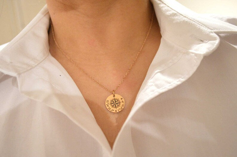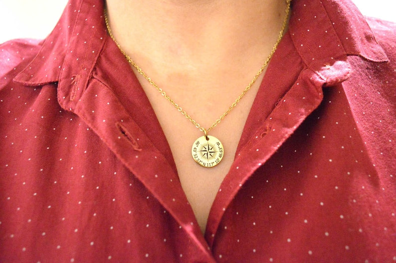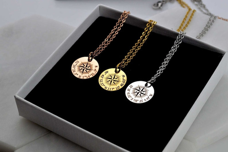 Compass Latitude Longitude Necklace – A Place in Your Heart, Etched in Time