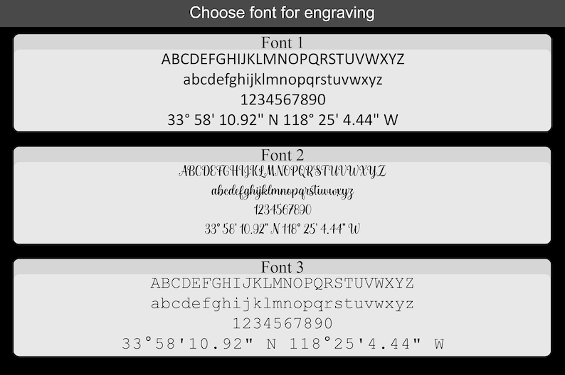 - Personalised with the latitude and longitude coordinates of a place that means something to you