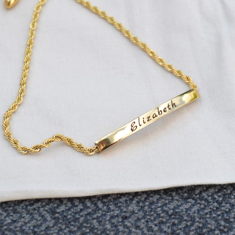Some things are too personal to write down; they should stay close to the heart. The Custom Bar Bracelet is made of stainless steel and lets you engrave a name, date, or whispered memory onto a piece of jewellery that will last forever. This bracelet has meaning as well as style. It can be a daily reminder of someone you love, a gift for a friend starting a new chapter, or a symbol of your own journey.