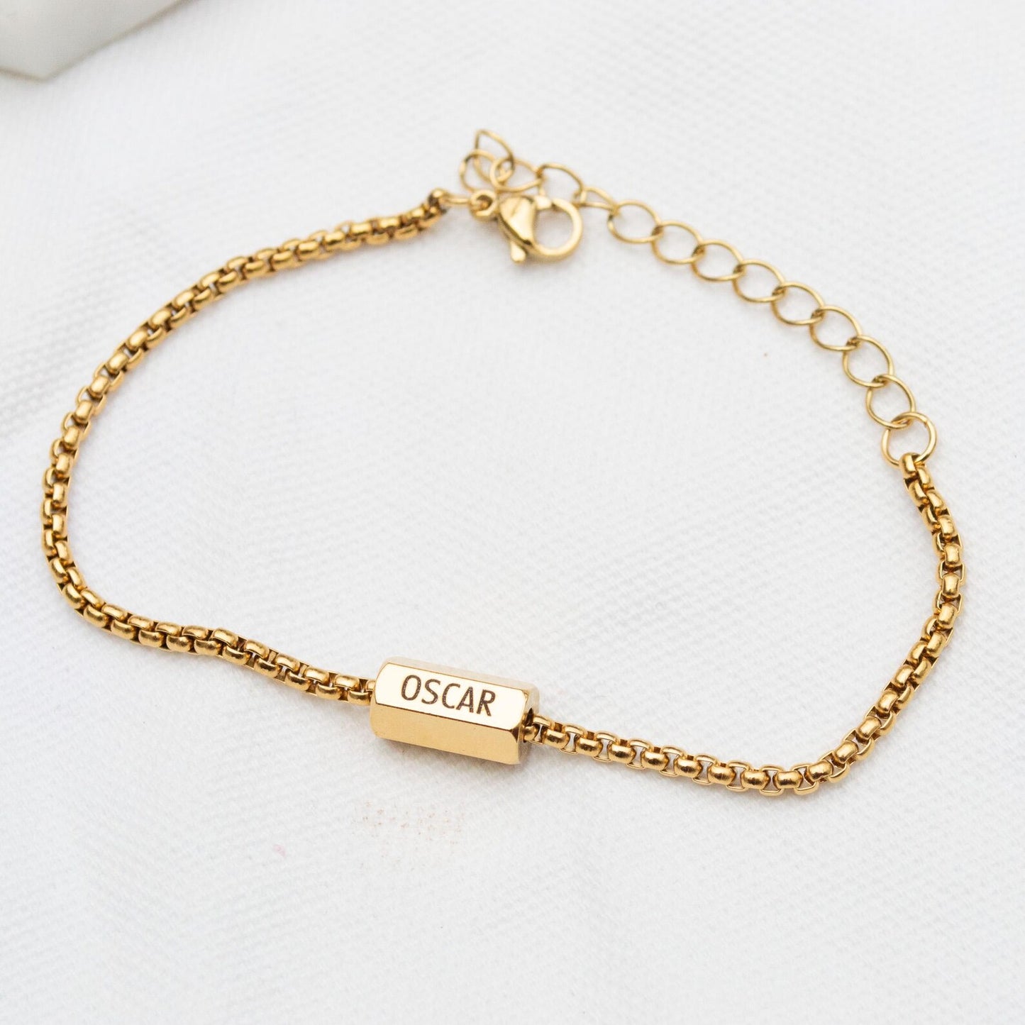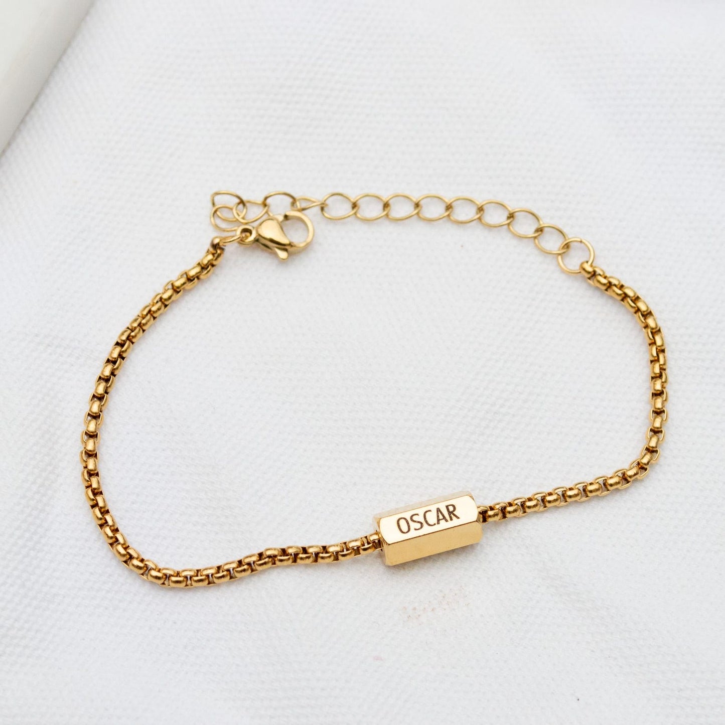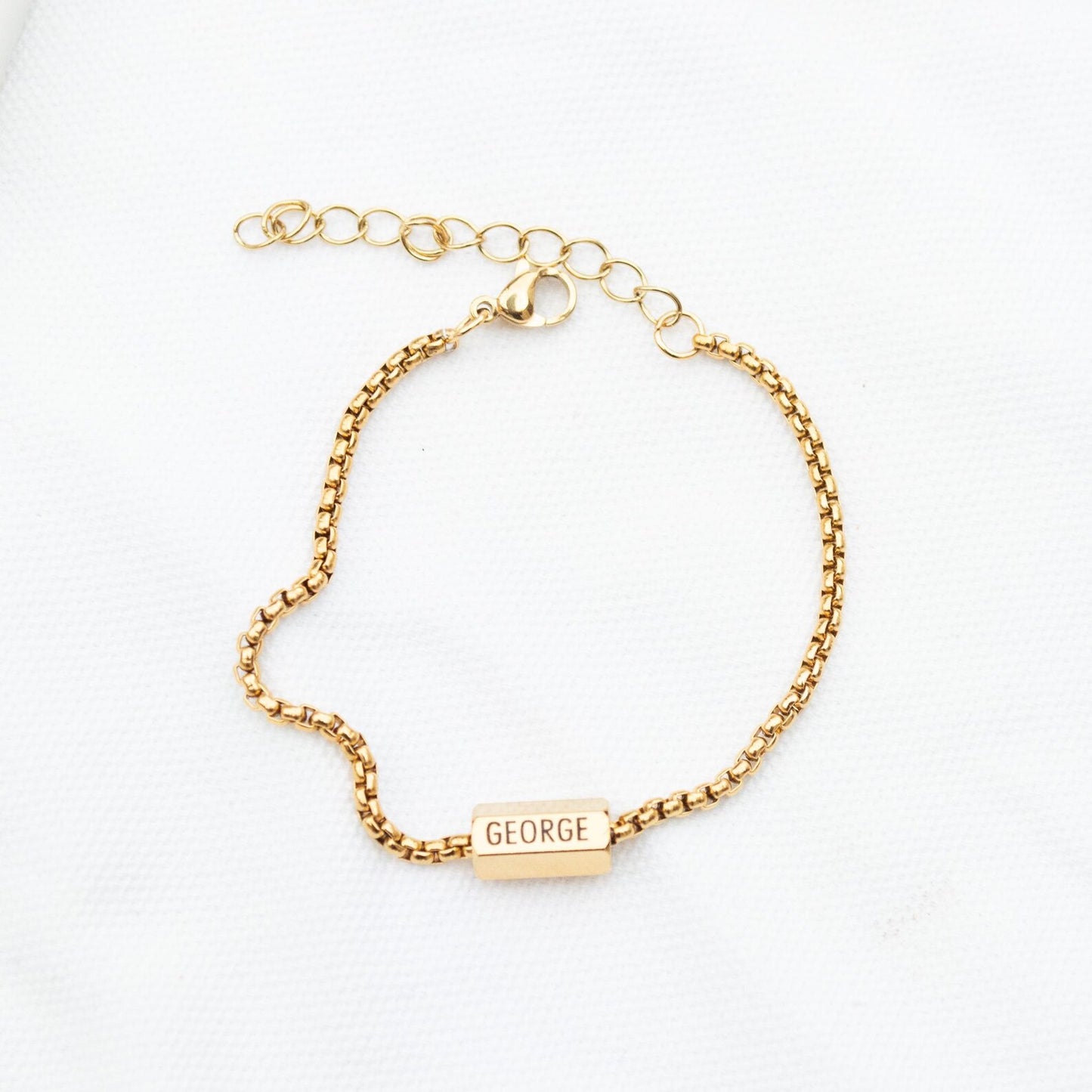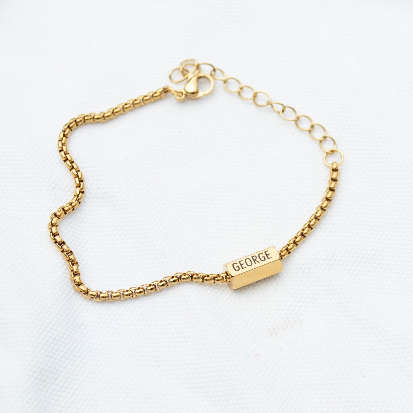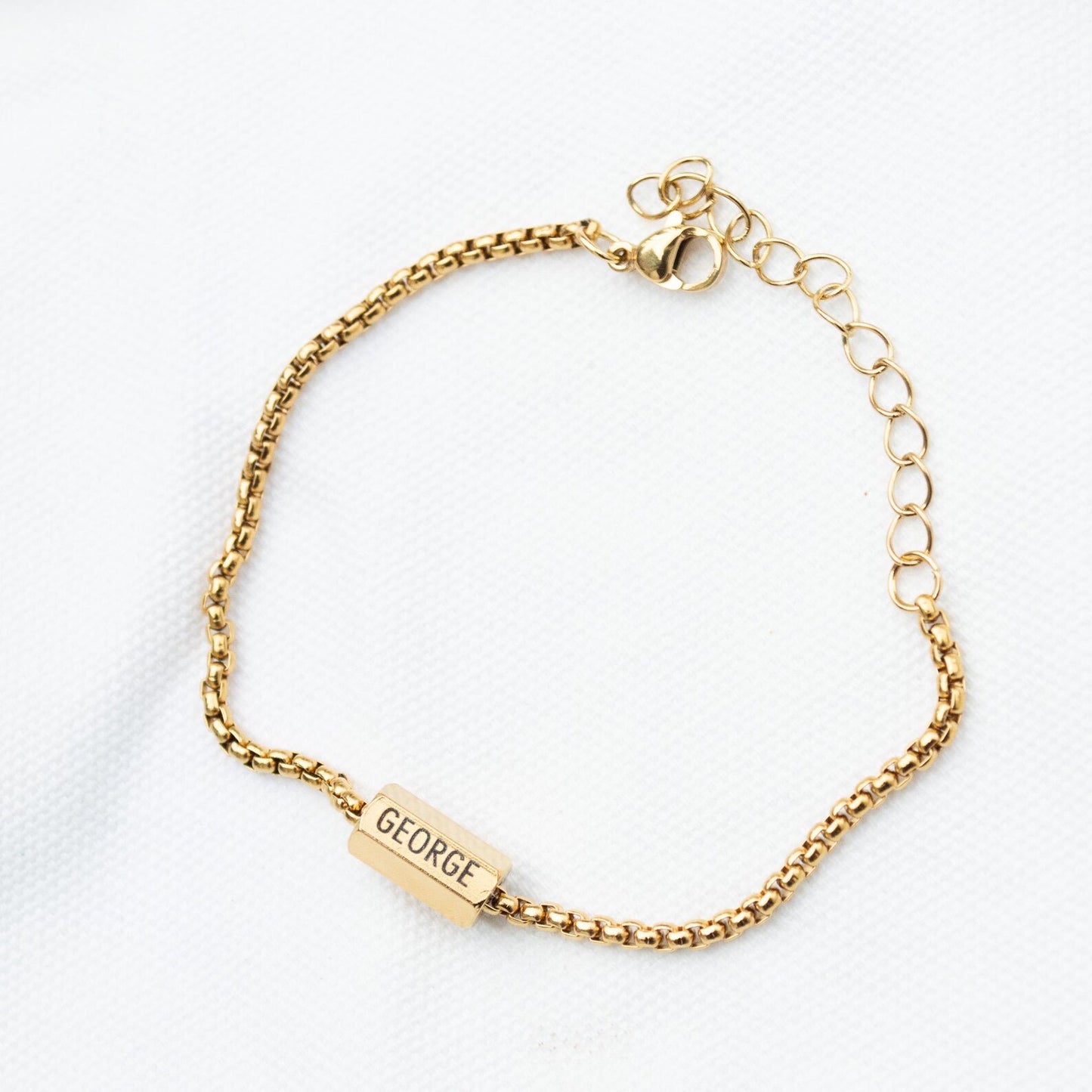 The gold and silver bead has 6 sides and can be engraved with 6 names.