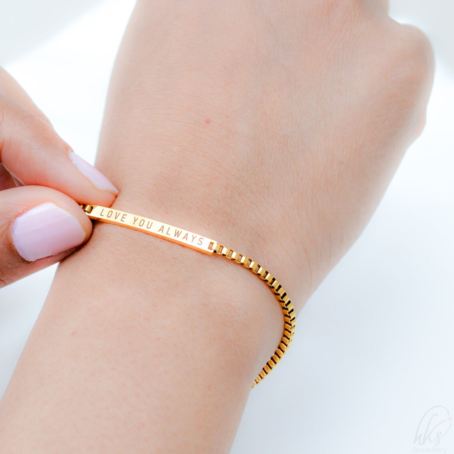 A moment immortalised, a name whispered in silver. A delicate yet significant piece, the Dainty Silver Name Bracelet is designed to hold the words, dates, or people that are most important. This bracelet combines sentiment with everyday elegance, making it ideal for someone who believes in beauty with purpose. It can be worn as a subtle tribute to love, a thoughtful birthday gift, or a personal token worn close to the skin.