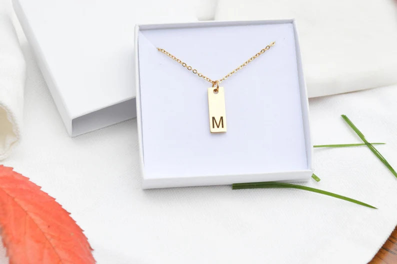 The tiny rectangle pendant is customizable with your chosen initial, making it a thoughtful gift for loved ones or a meaningful keepsake for yourself. The adjustable chain, which ranges from 16-18 inches, ensures the perfect fit for layering or wearing solo.