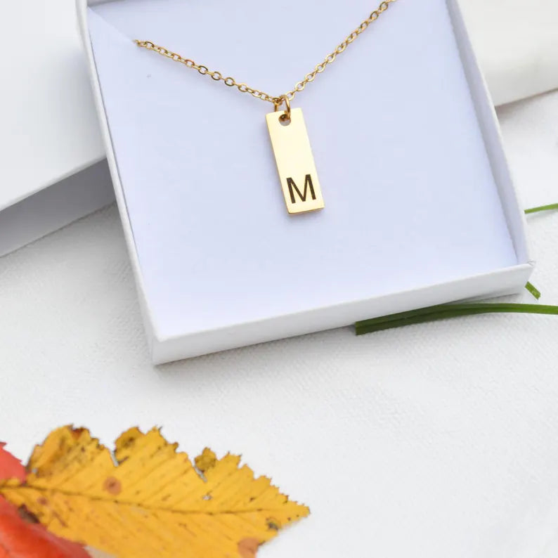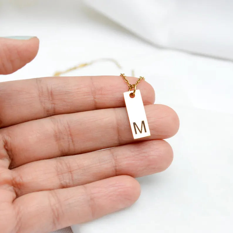 Elevate your everyday style with this delicate Personalized Gold Initial Necklace, featuring a sleek 14K gold tiny rectangle pendant. Crafted from high-quality stainless steel with a luxurious gold finish, this necklace is beautiful and waterproof—perfect for all-day wear, including showers, workouts, and beach days!