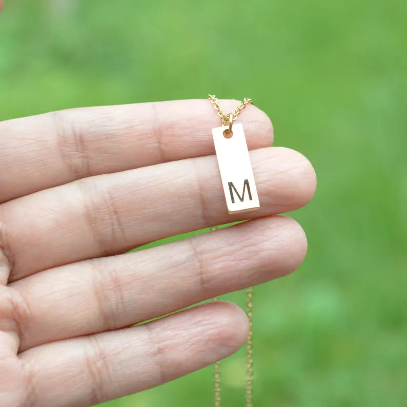 Engraved Bar Initial Necklace | Monogram Jewelry