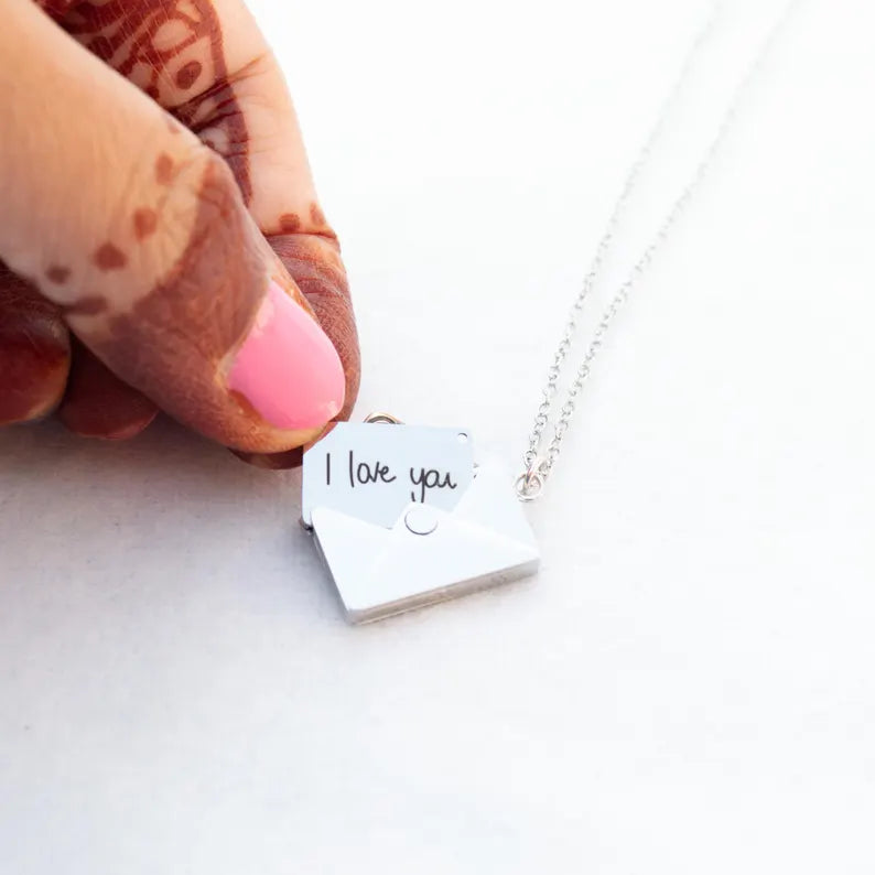 Related Searches: Handwriting Necklace, Envelope Necklace, Gold Plated Personalised Necklace, Custom Engraving, Trendy Best Friend Gift, Handwriting Jewelry