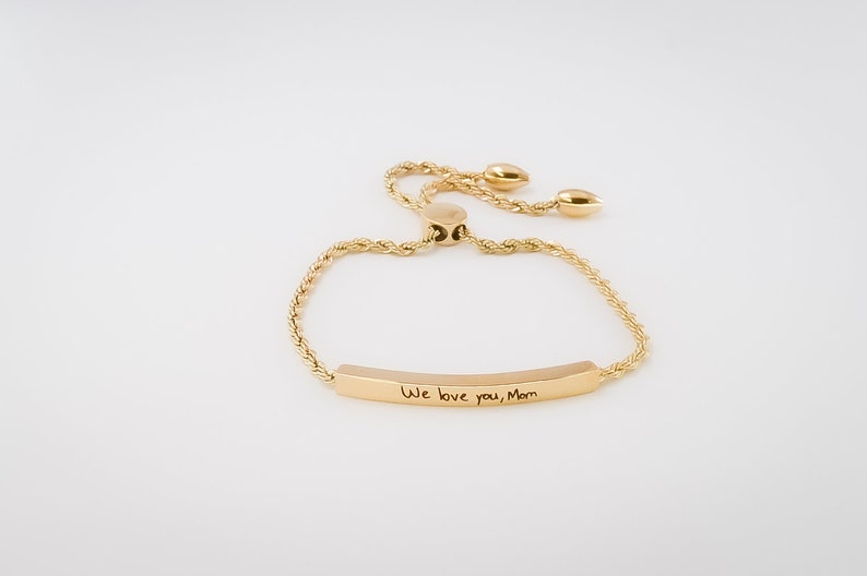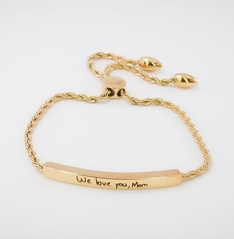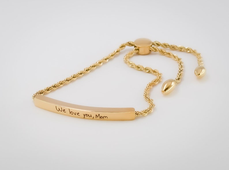 Handwriting is timeless. The way a loved one curves their letters and the way their words sound so familiar are two examples. The Handwriting Slider Chain Bracelet captures that feeling in its most pure form by turning your message into a permanent engraving. This bracelet turns handwriting into something real that you can wear and feel all the time. It could be a note from a parent, a child's first scrawl, or a few words written in memory.