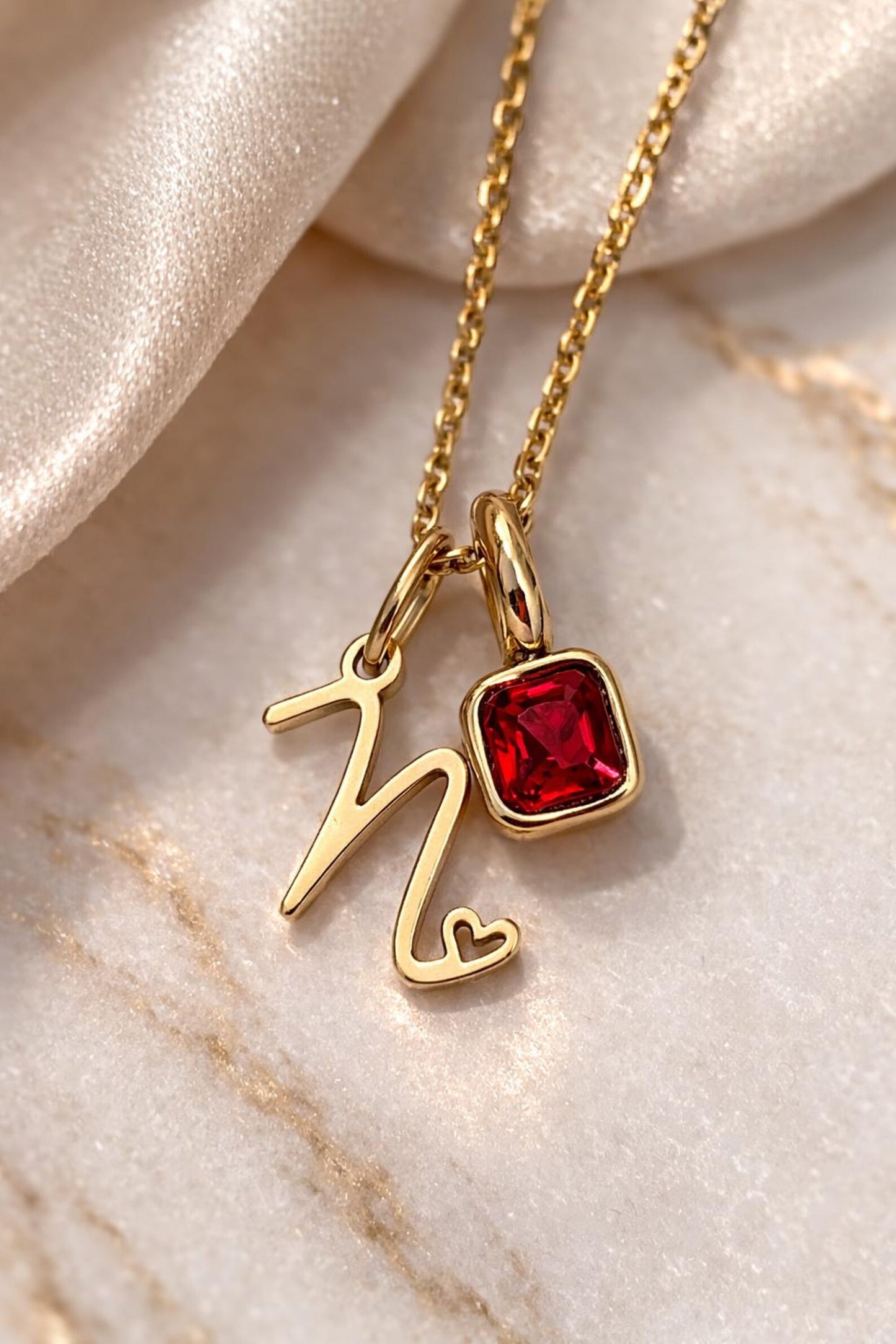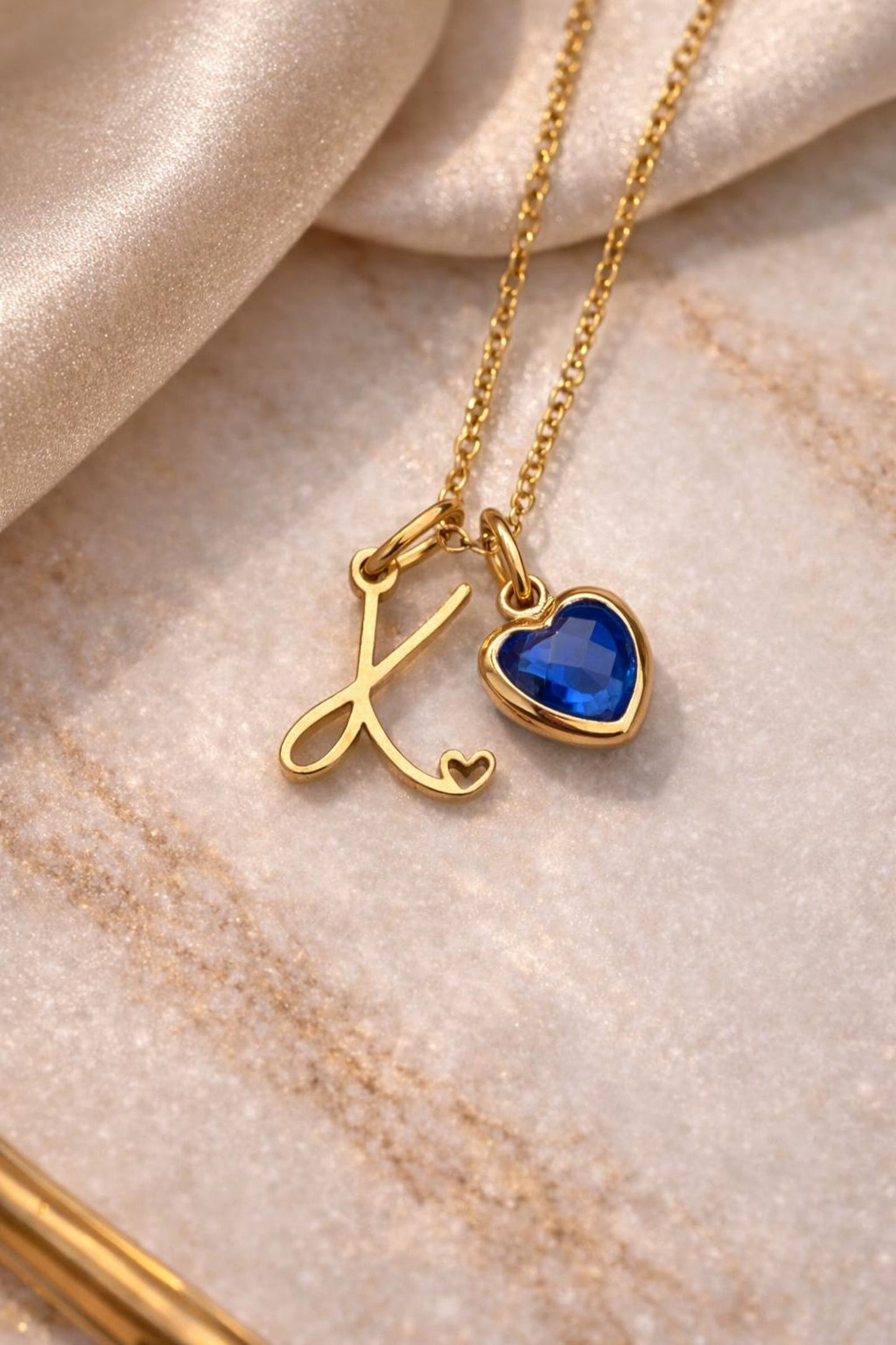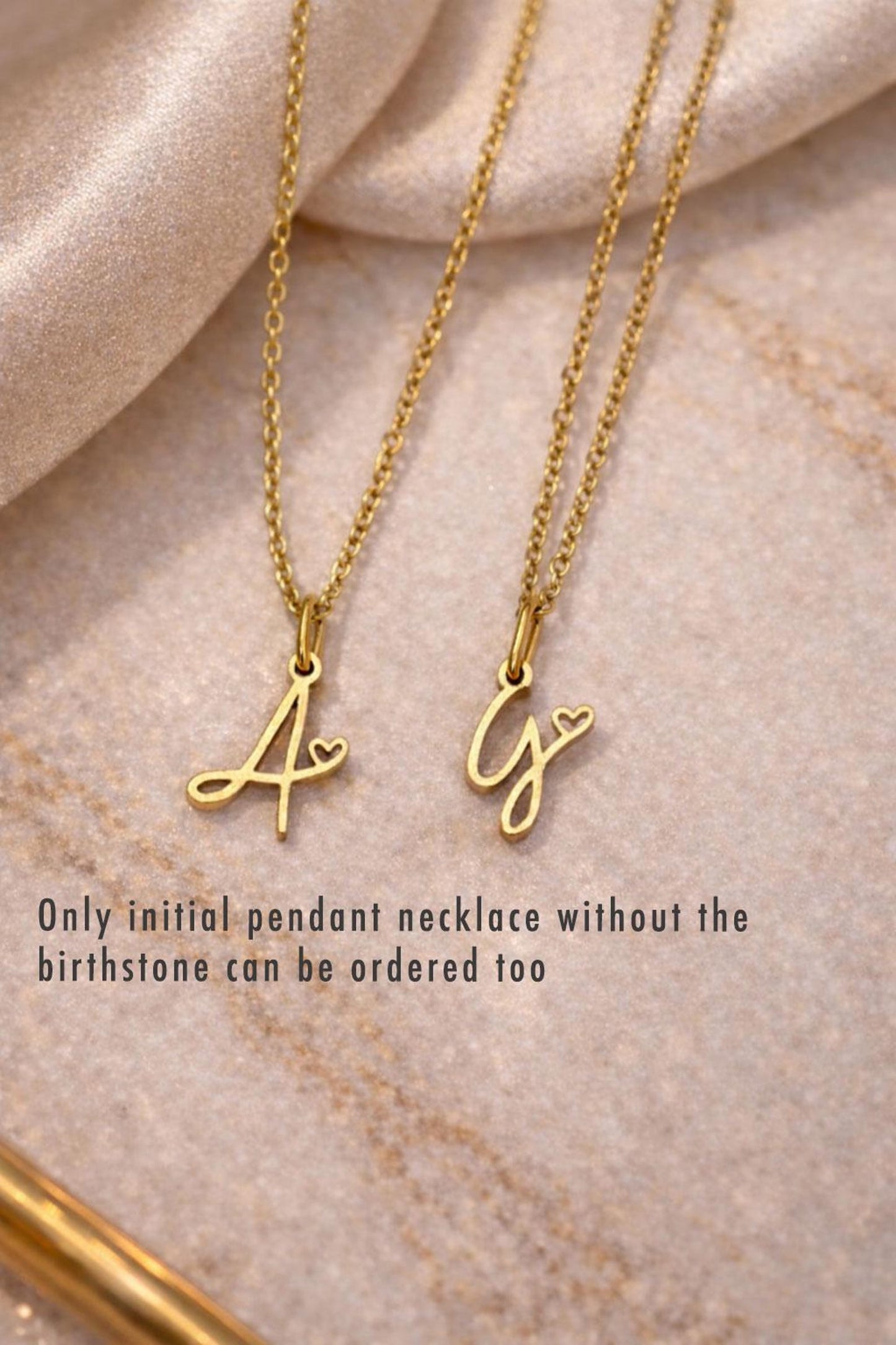This beautiful gold initial necklace with a tiny heart detail is the perfect personalised jewellery piece for everyday wear. Each necklace can be customised with an optional zircon birthstone charm, making it a meaningful and elegant gift.