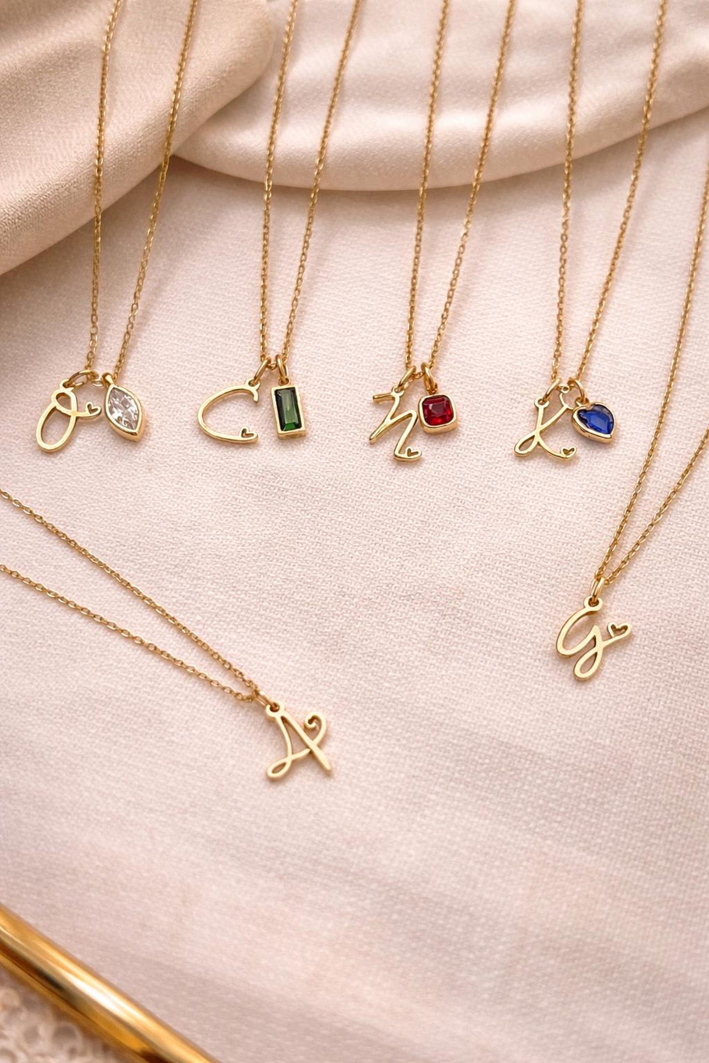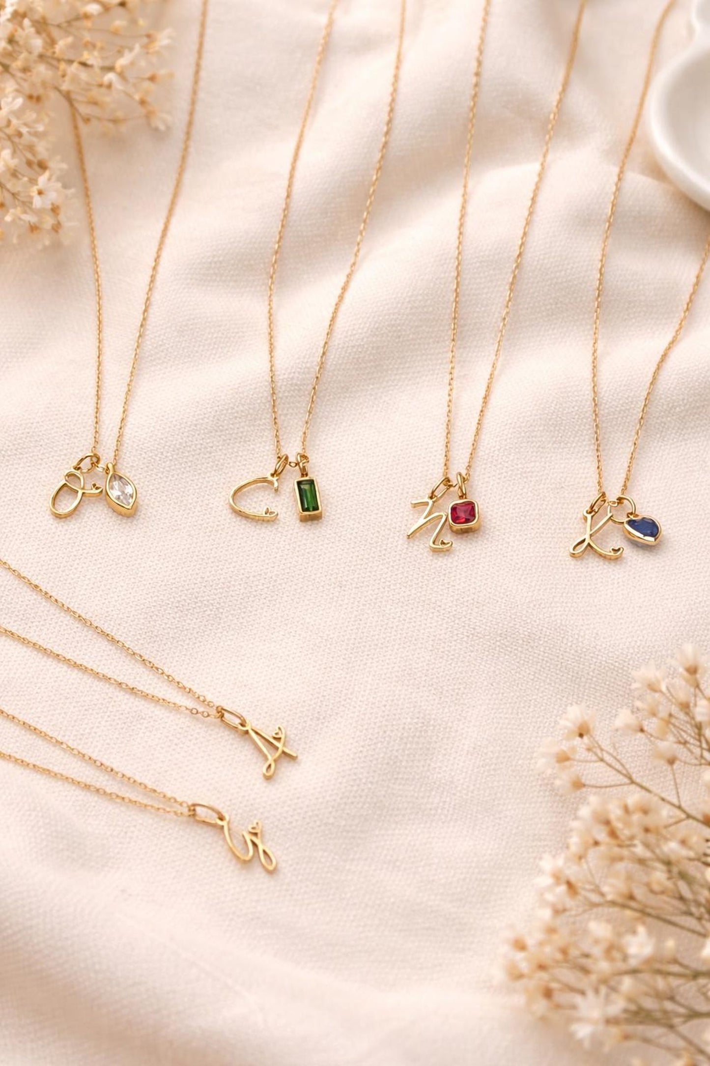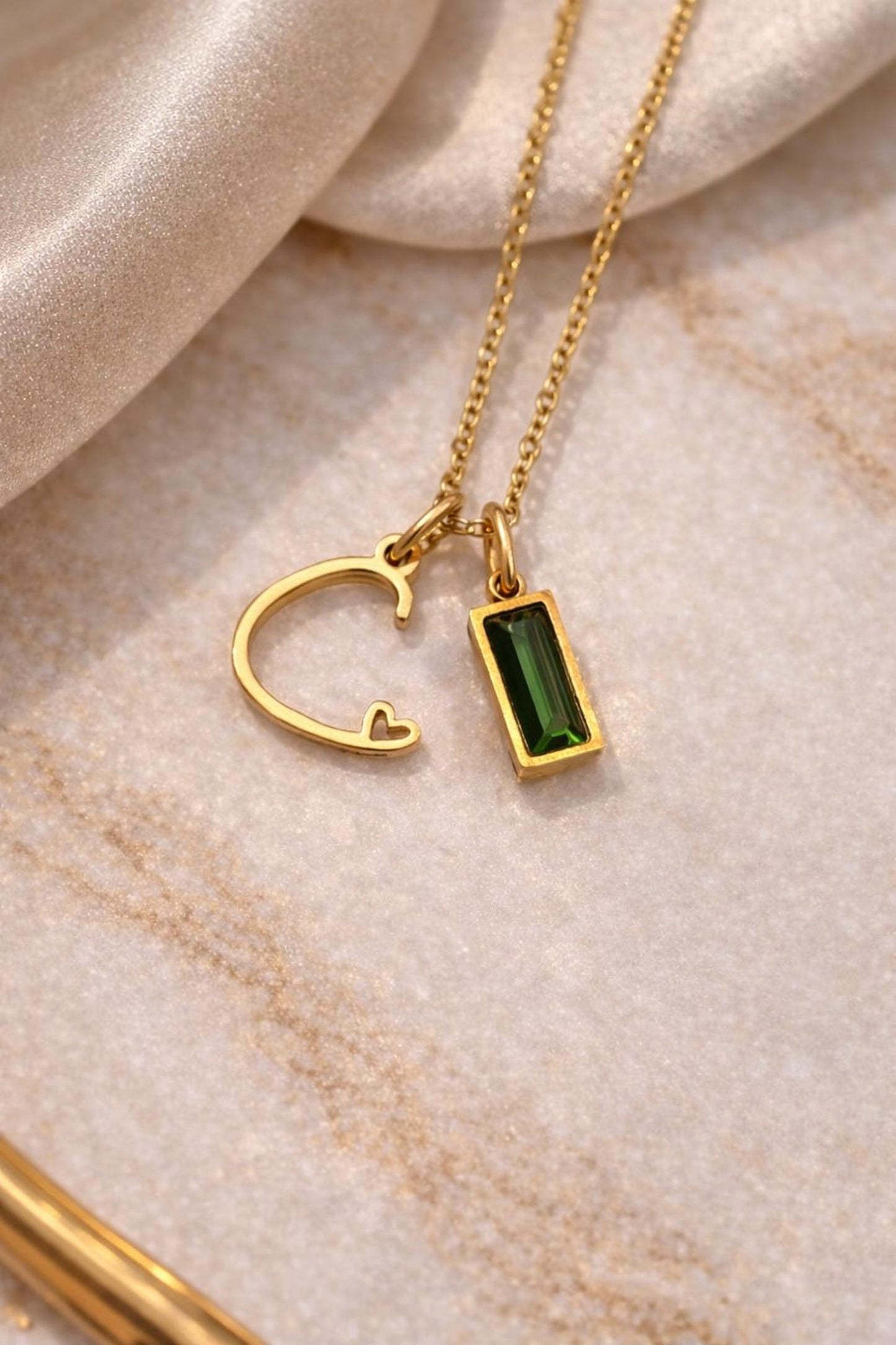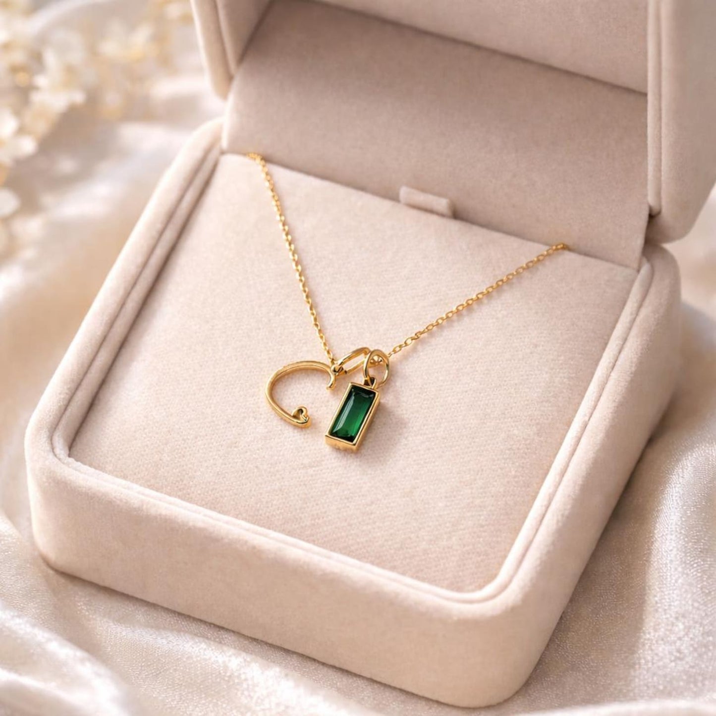 This beautiful gold initial necklace with a tiny heart detail is the perfect personalised jewellery piece for everyday wear. Each necklace can be customised with an optional zircon birthstone charm, making it a meaningful and elegant gift.