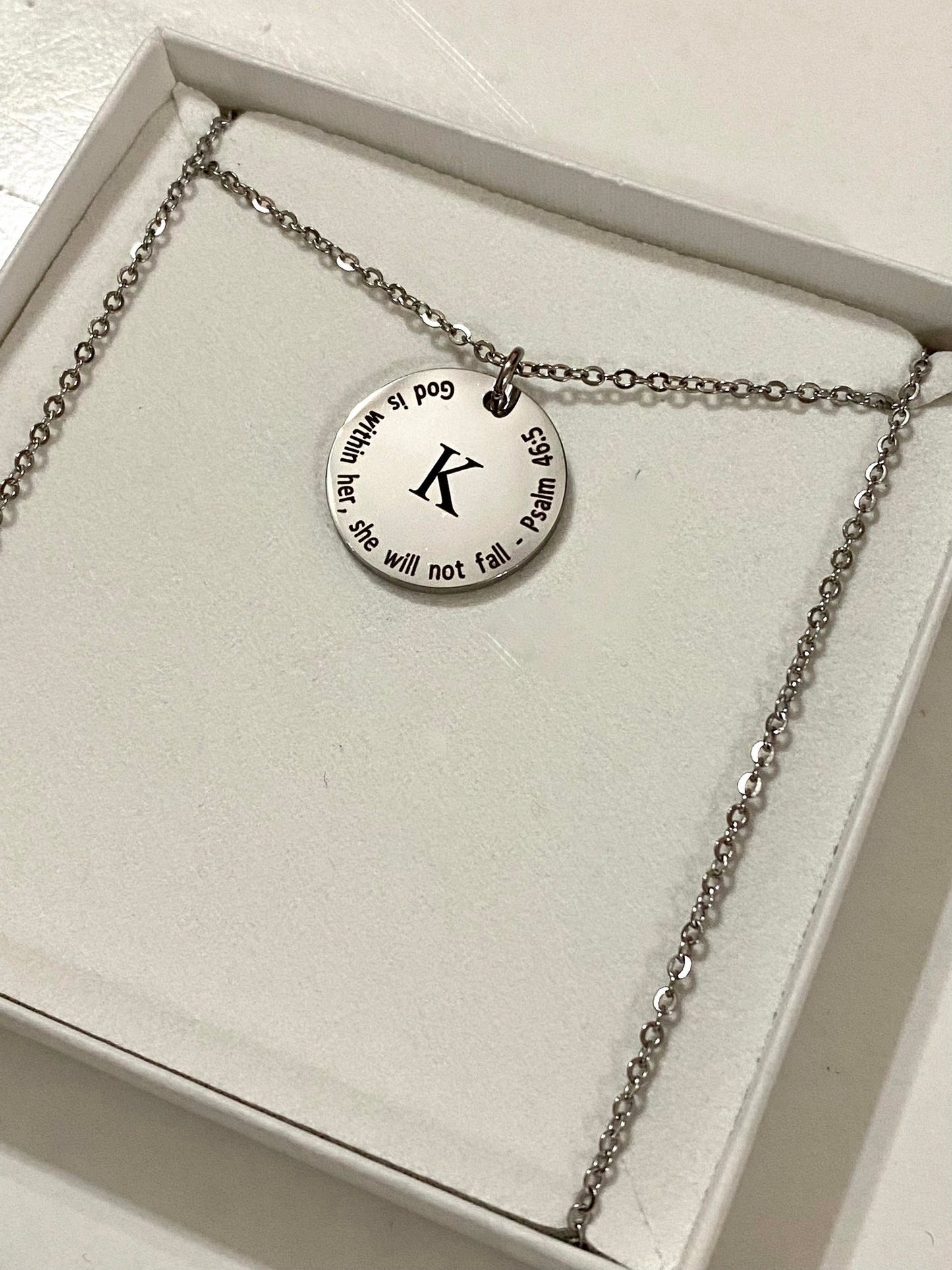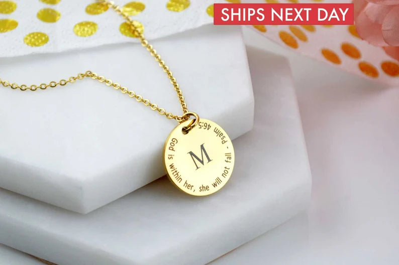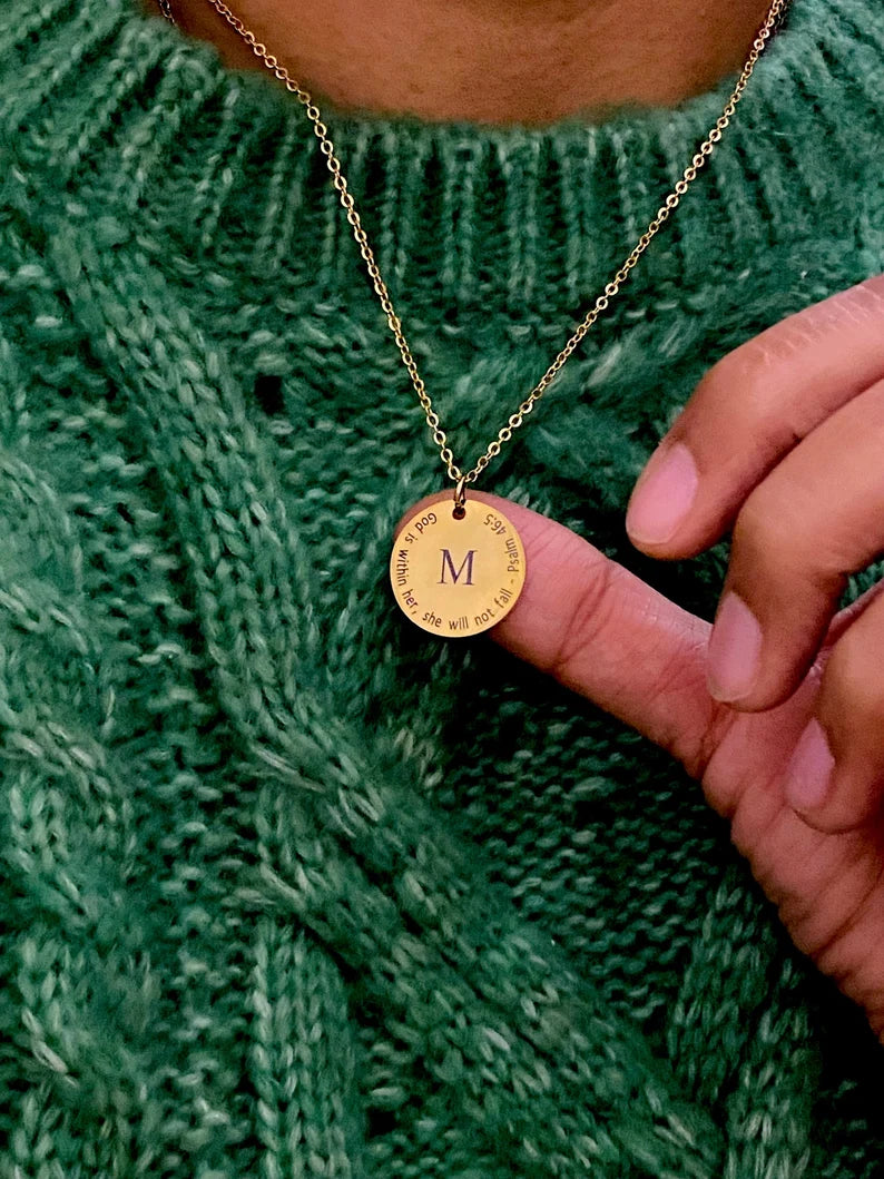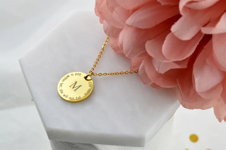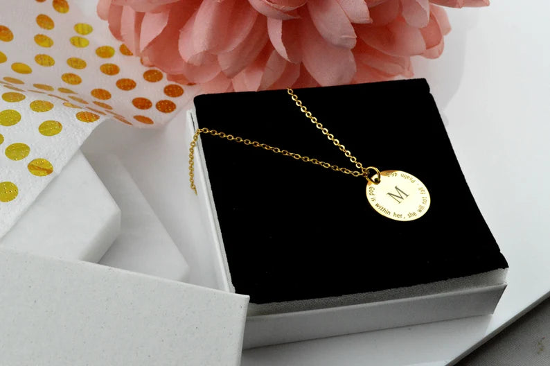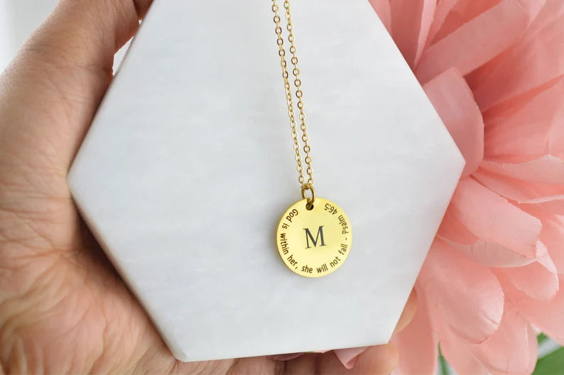 The most straightforward symbols can occasionally make the biggest impression. With an engraved initial and an inspirational Bible verse of your choosing, the Name Initial Christian Necklace is a sophisticated way to express identity, faith, and love. Wearing this sophisticated necklace as a daily reminder of God's presence or giving it as a gift to commemorate a spiritual journey makes it a sentimental memento that will last a lifetime.
