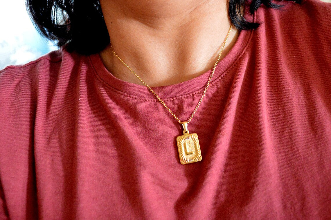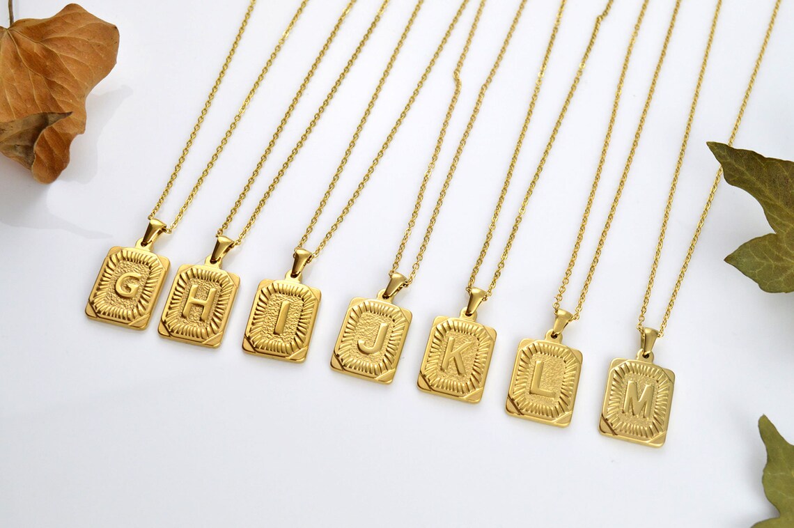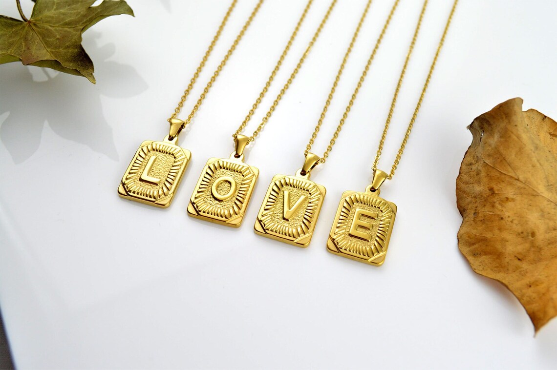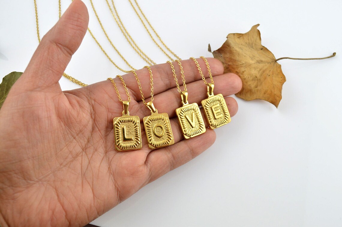 18K premium quality letter pendant necklace, gold plated over premium stainless steel, waterproof anti-tarnish jewelry, nickel lead and cadmium free.