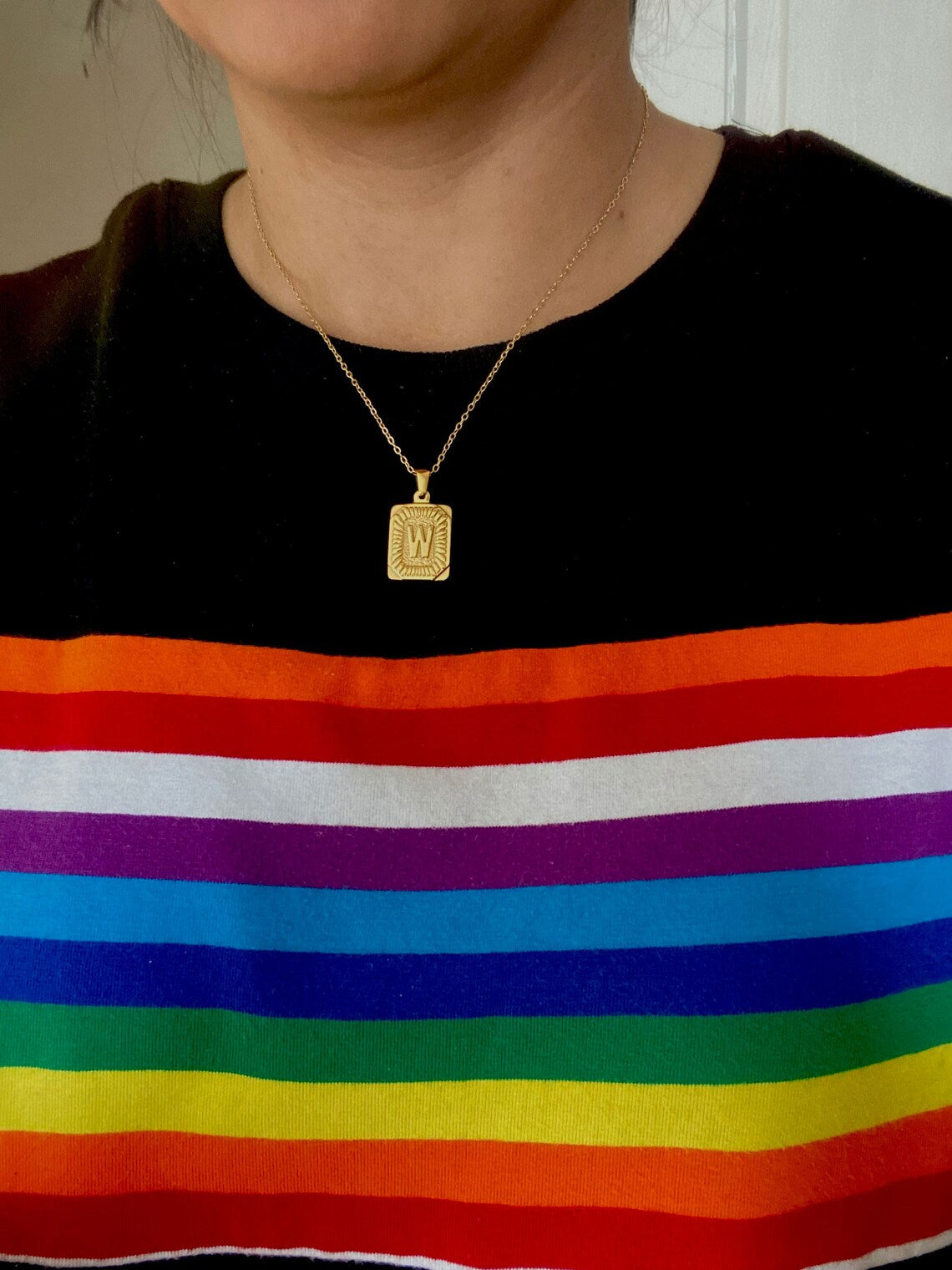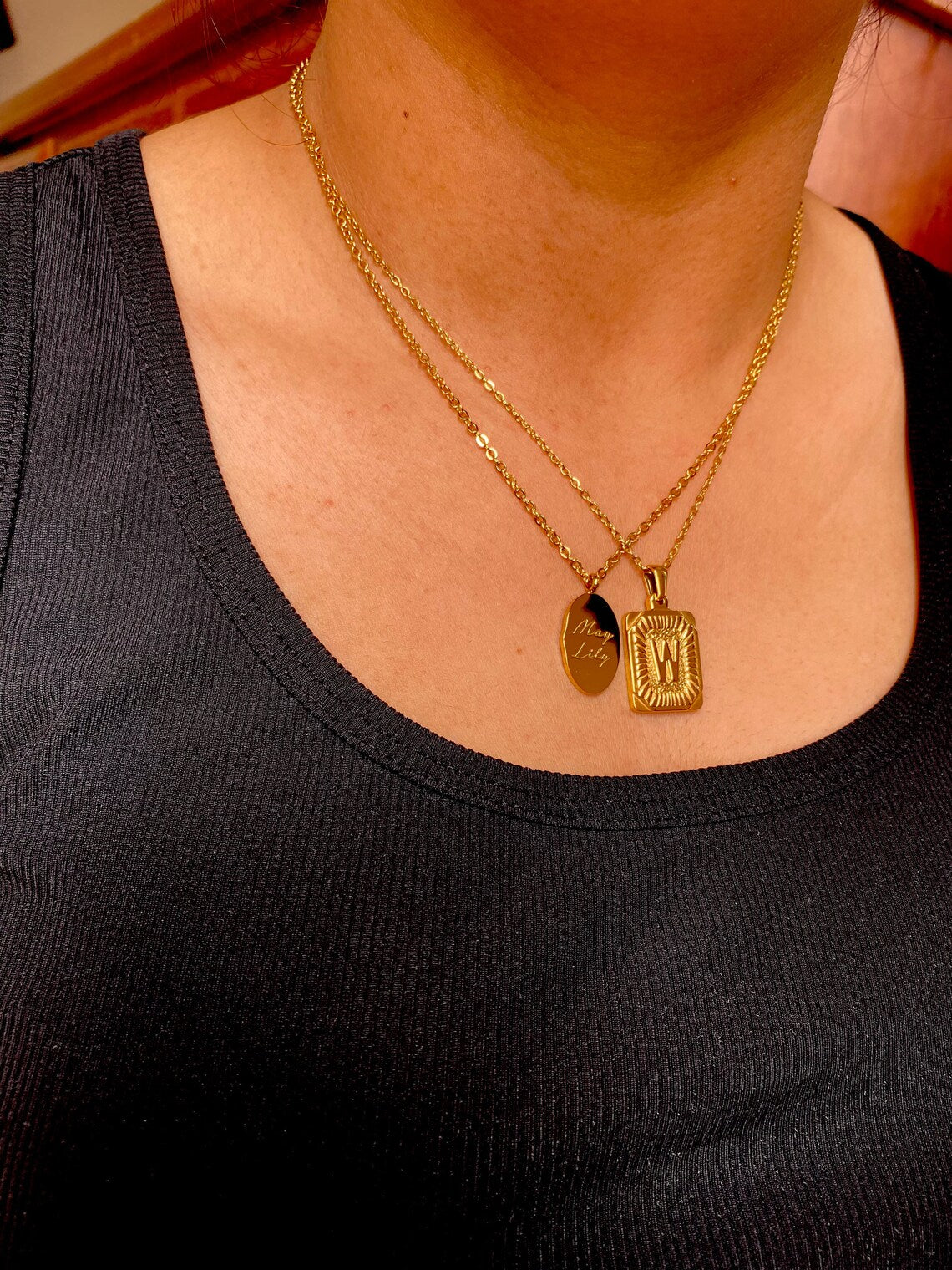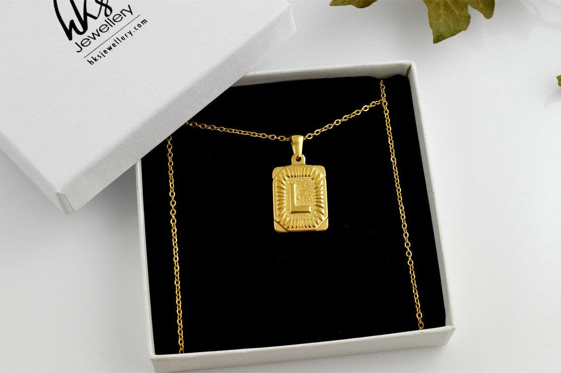 18K premium quality letter pendant necklace, gold plated over premium stainless steel, waterproof anti-tarnish jewelry, nickel lead and cadmium free.