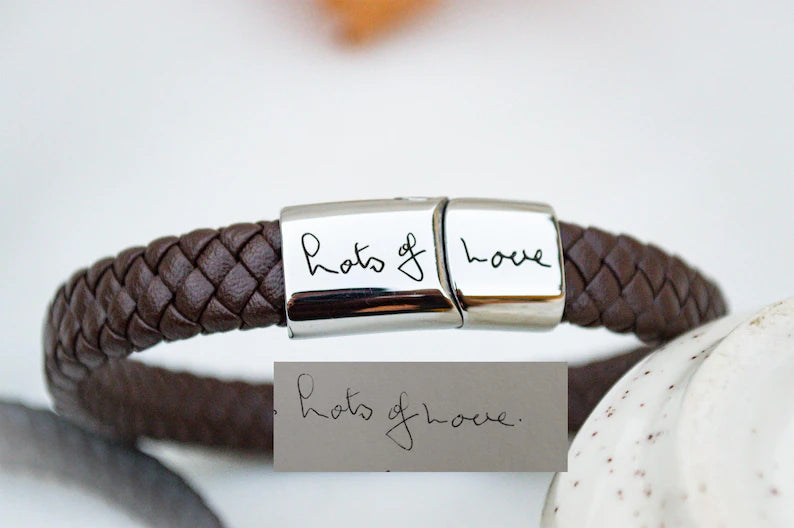 Related Searches: Personalized Handwriting Leather Cuff, Engraved Actual Handwriting Bracelet, Keepsake Jewelry, Custom Signature Jewelry, Leather Cuff