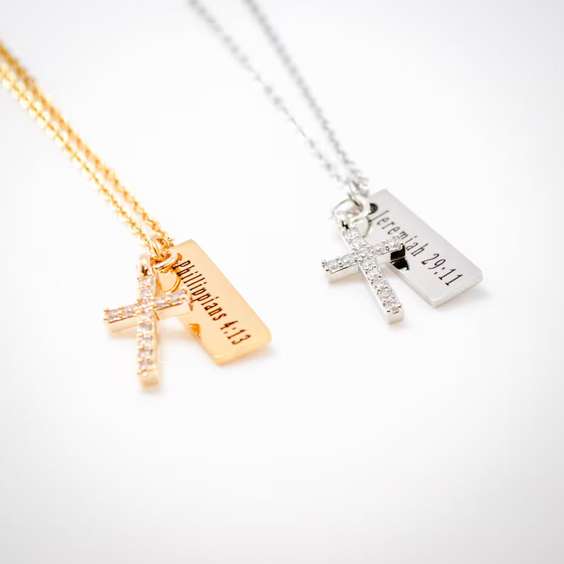 - Engraved with Meaning: You can add a name, date, Bible verse, or special message to one or both sides of the slim bar pendant, depending on your preferences.