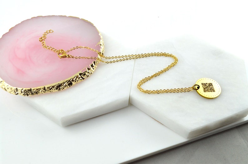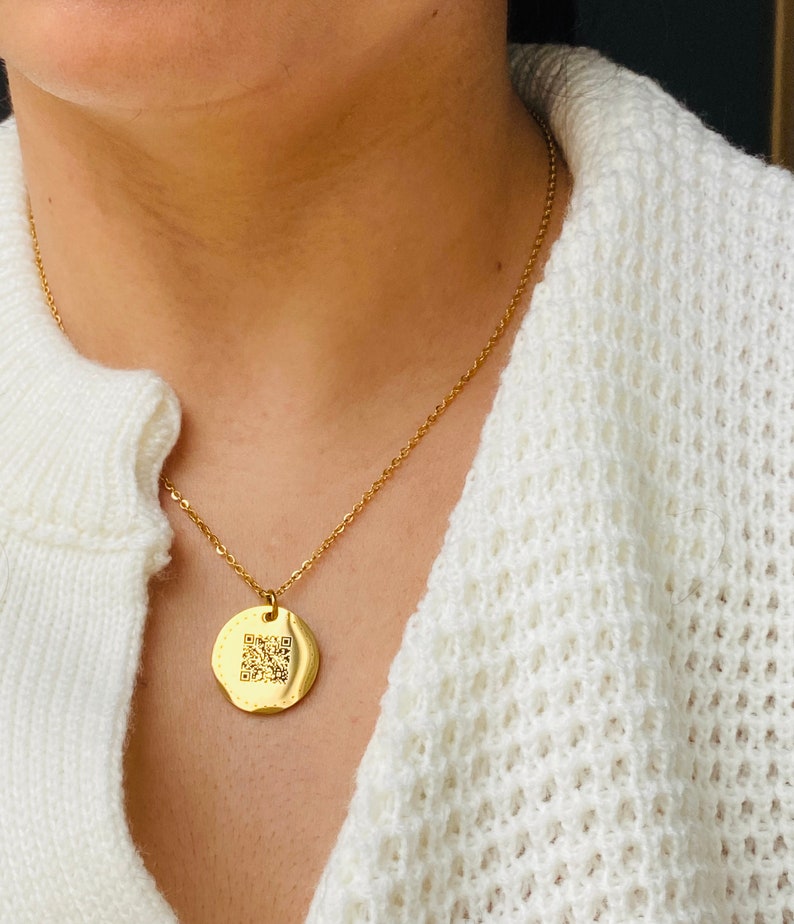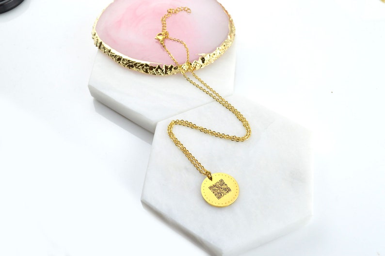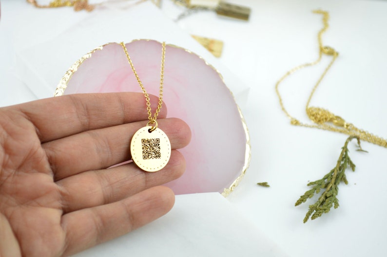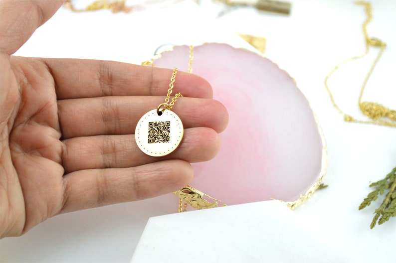 Some things are too personal to say, too special to show, and only the person who knows where to look can see them. With the QR Code Engraved Necklace, you can turn a secret message, a shared memory, or a heartfelt link into something you can wear. This necklace hides your feelings in plain sight, whether it's a romantic song, a heartfelt note, or a private joke. A simple scan will show them. It's a very modern keepsake that would be great for couples, best friends, or anyone who wants to keep a memory close to their heart.