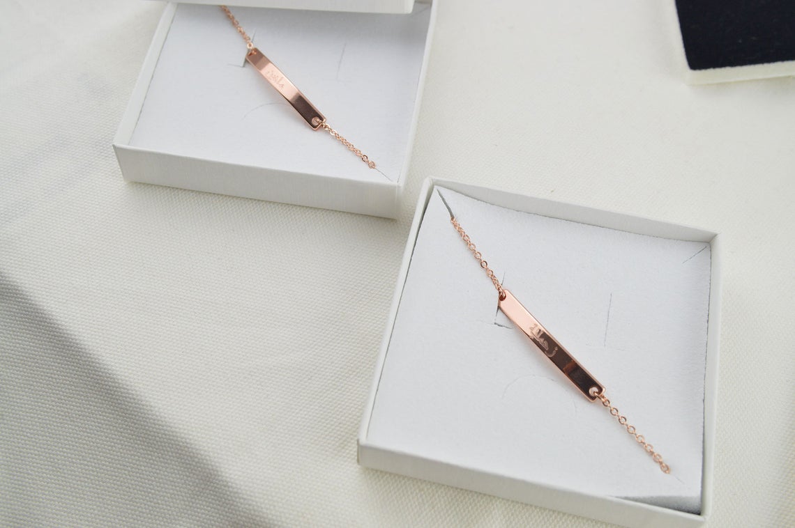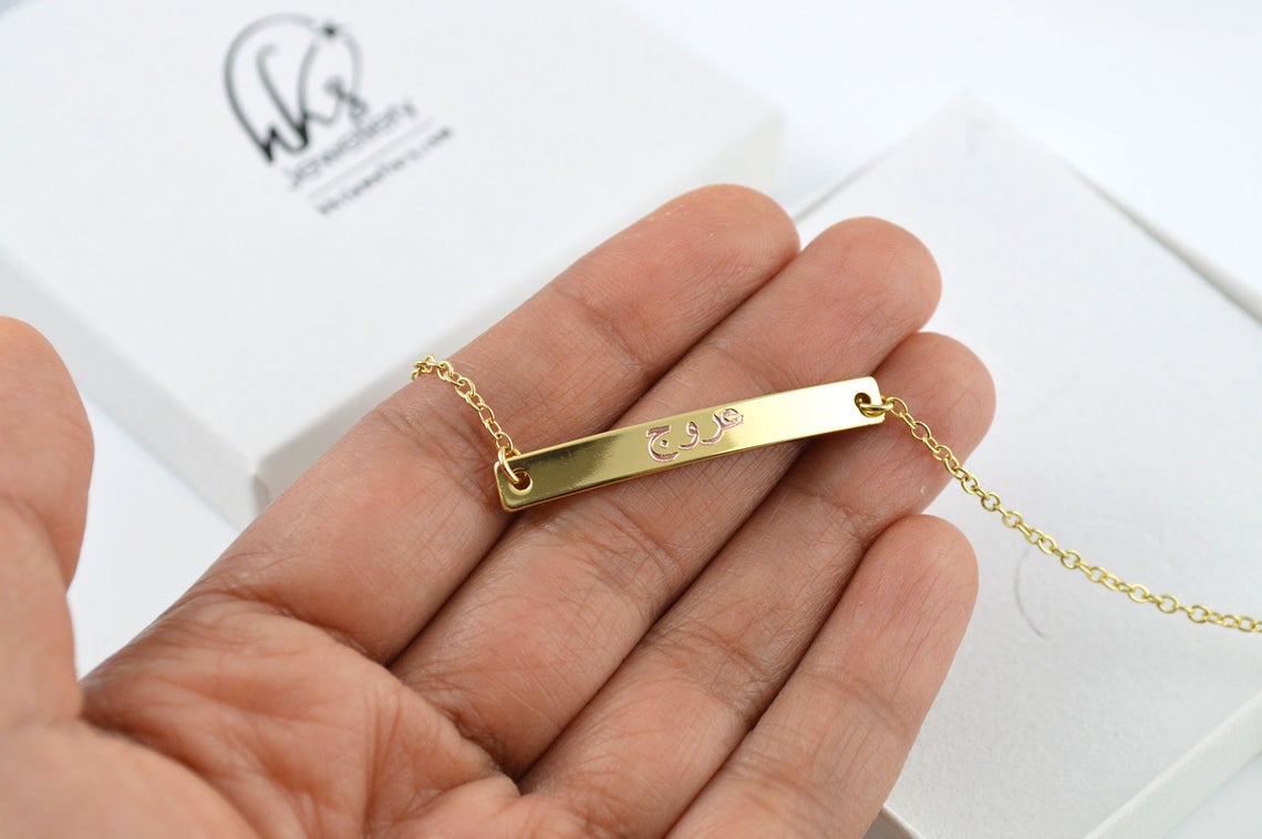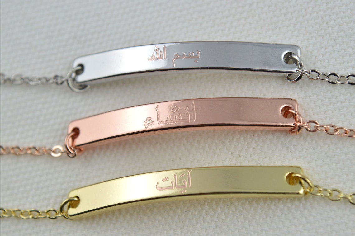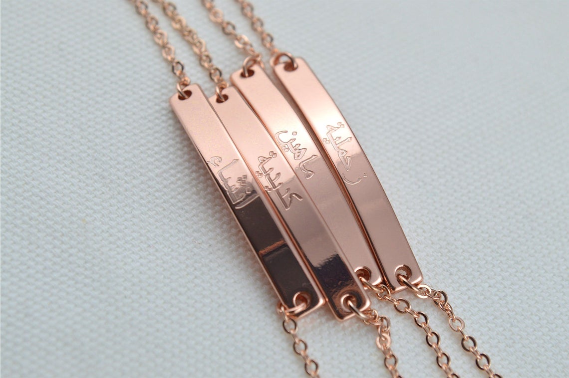 Some words are too important to speak out loud; instead, they should be worn close, whispered, and never forgotten. These words are elegantly honoured by the Rose Gold Arabic Carved Bar Bracelet. This bracelet captures the beauty of language and turns it into a timeless memento, whether it's a name, a date, or a sacred phrase. Engraved in a script that feels poetic on the wrist, it's a delicate yet potent gesture that's ideal for Ramadan, Eid, or just to express love.