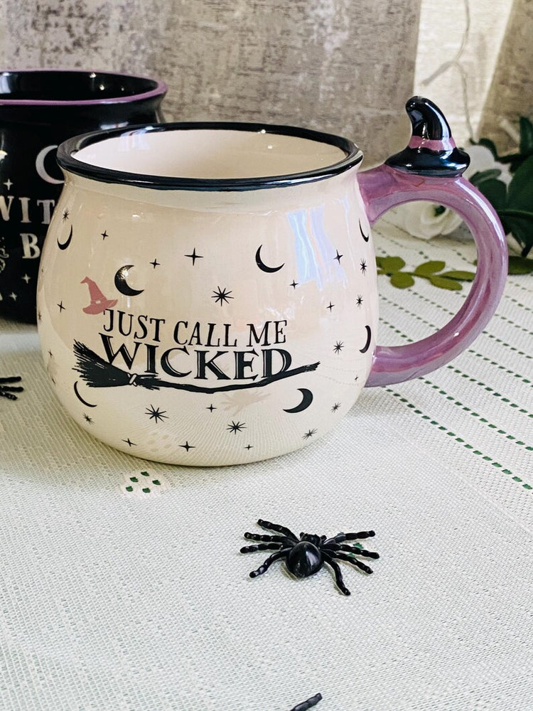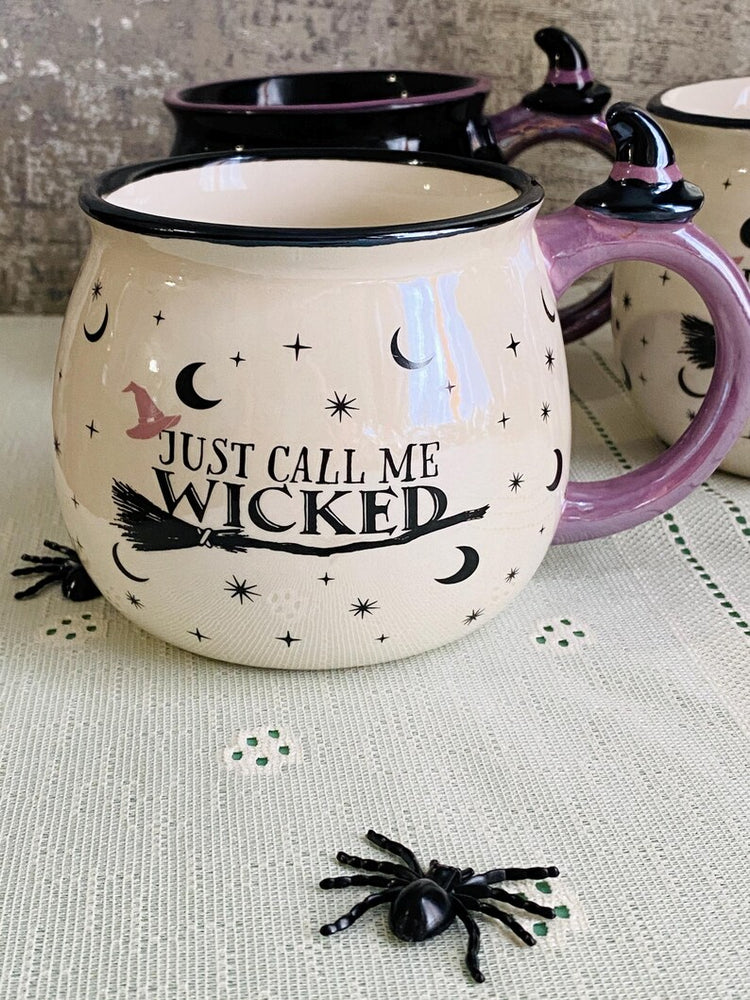 This Wicked Halloween mug is great for coffee, tea, or a naughty pumpkin spice latte to start your spooky mornings off right. This ceramic piece is strong and has a big Wicked print on it. It's perfect for witches, wizards, and anyone who loves Halloween all year long.